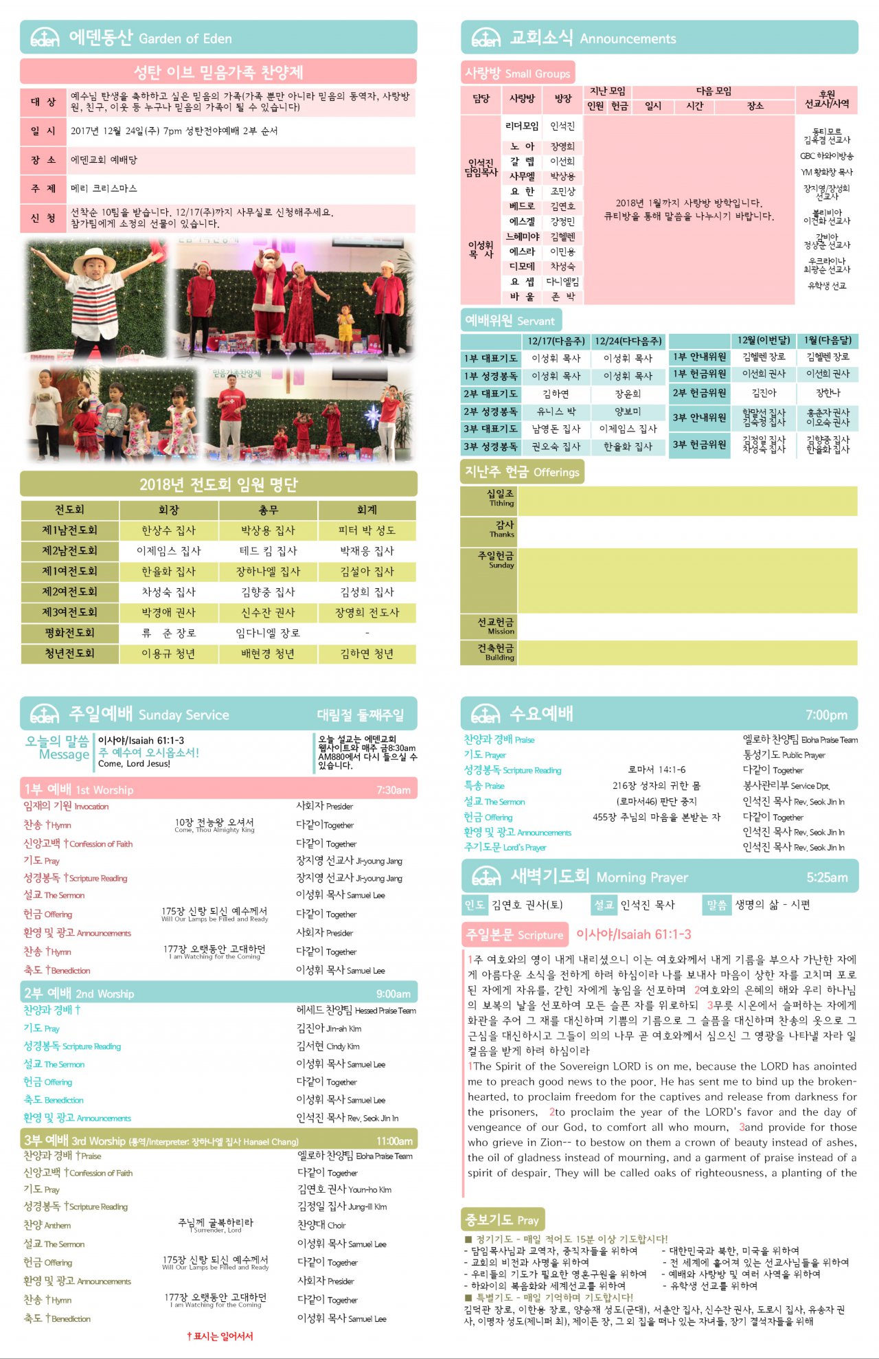 2017/12/10 하와이한인교회 에덴장로교회 주보