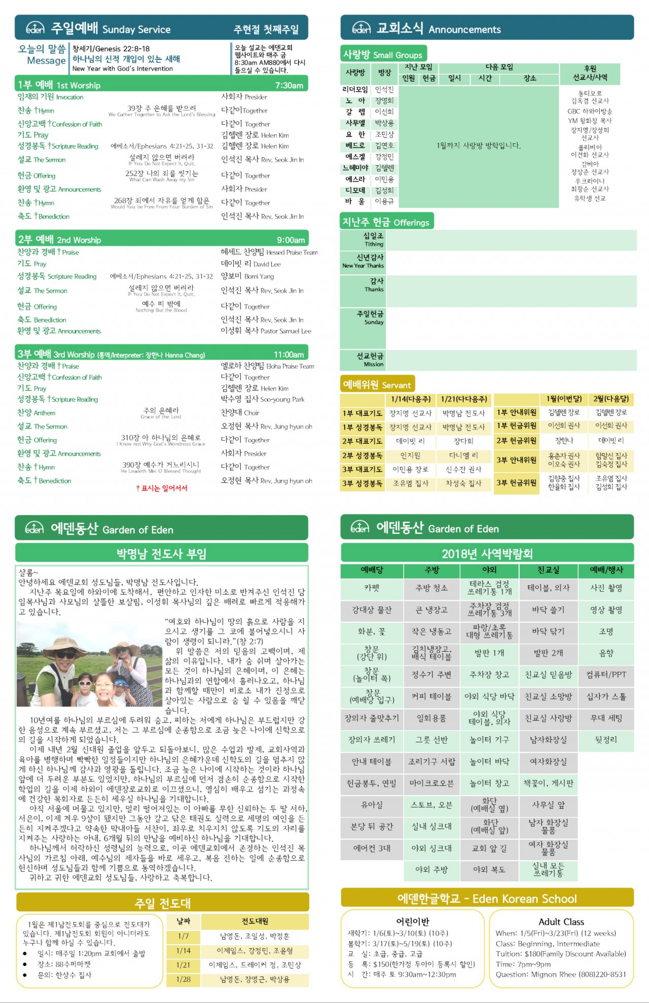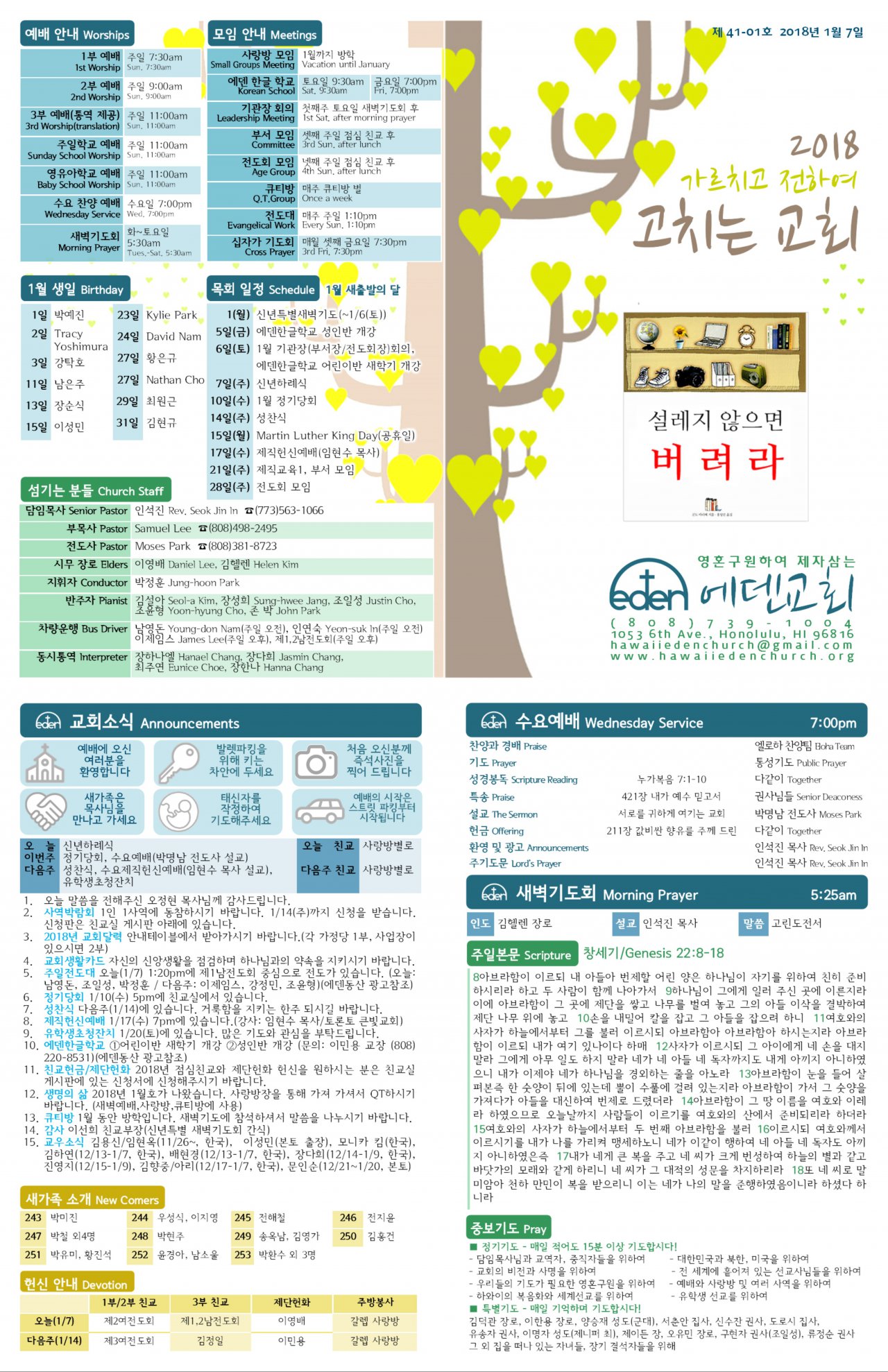 2018/01/07 하와이한인교회 에덴장로교회 주보