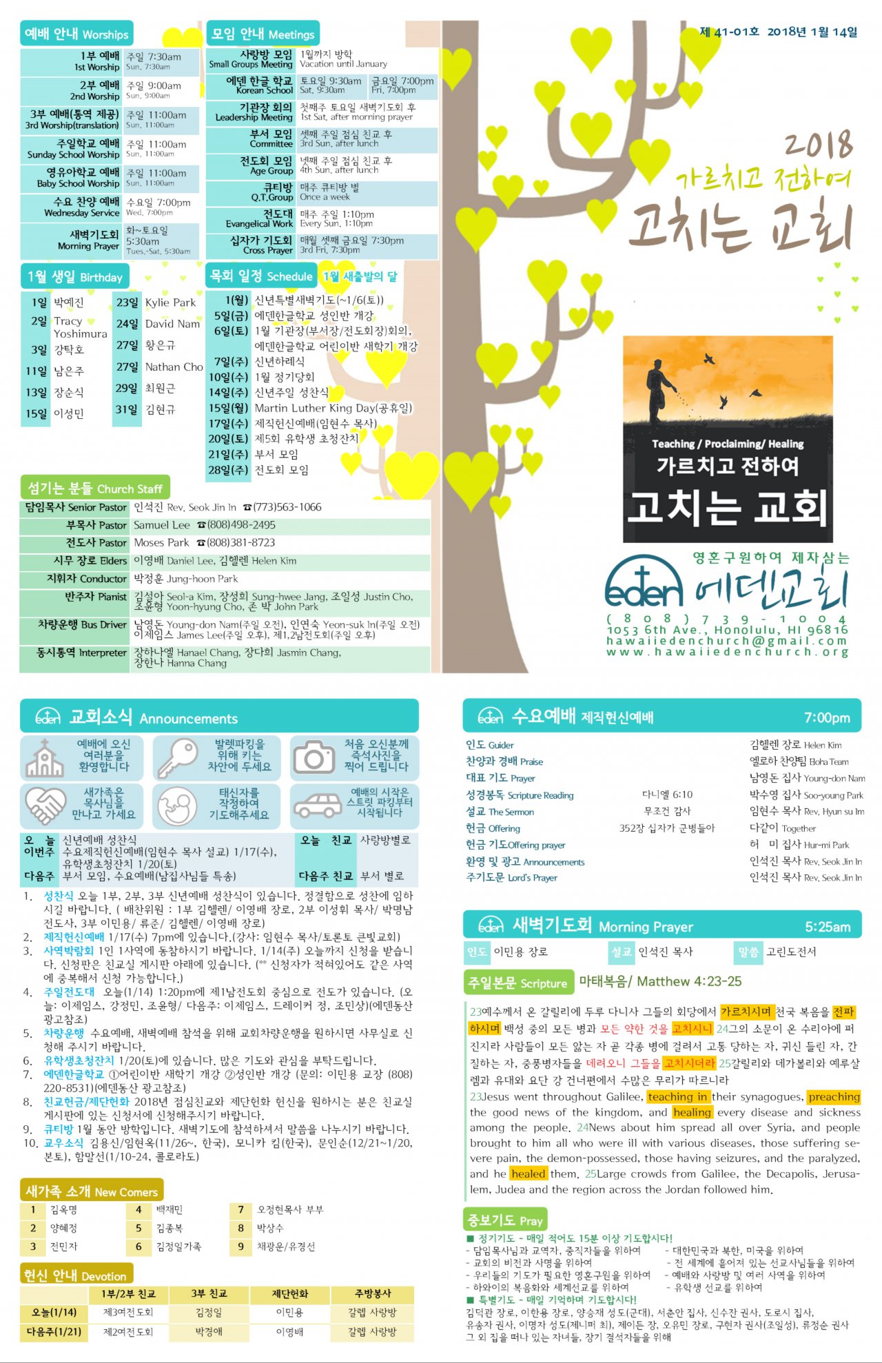 2018/01/14 하와이한인교회 에덴장로교회 주보