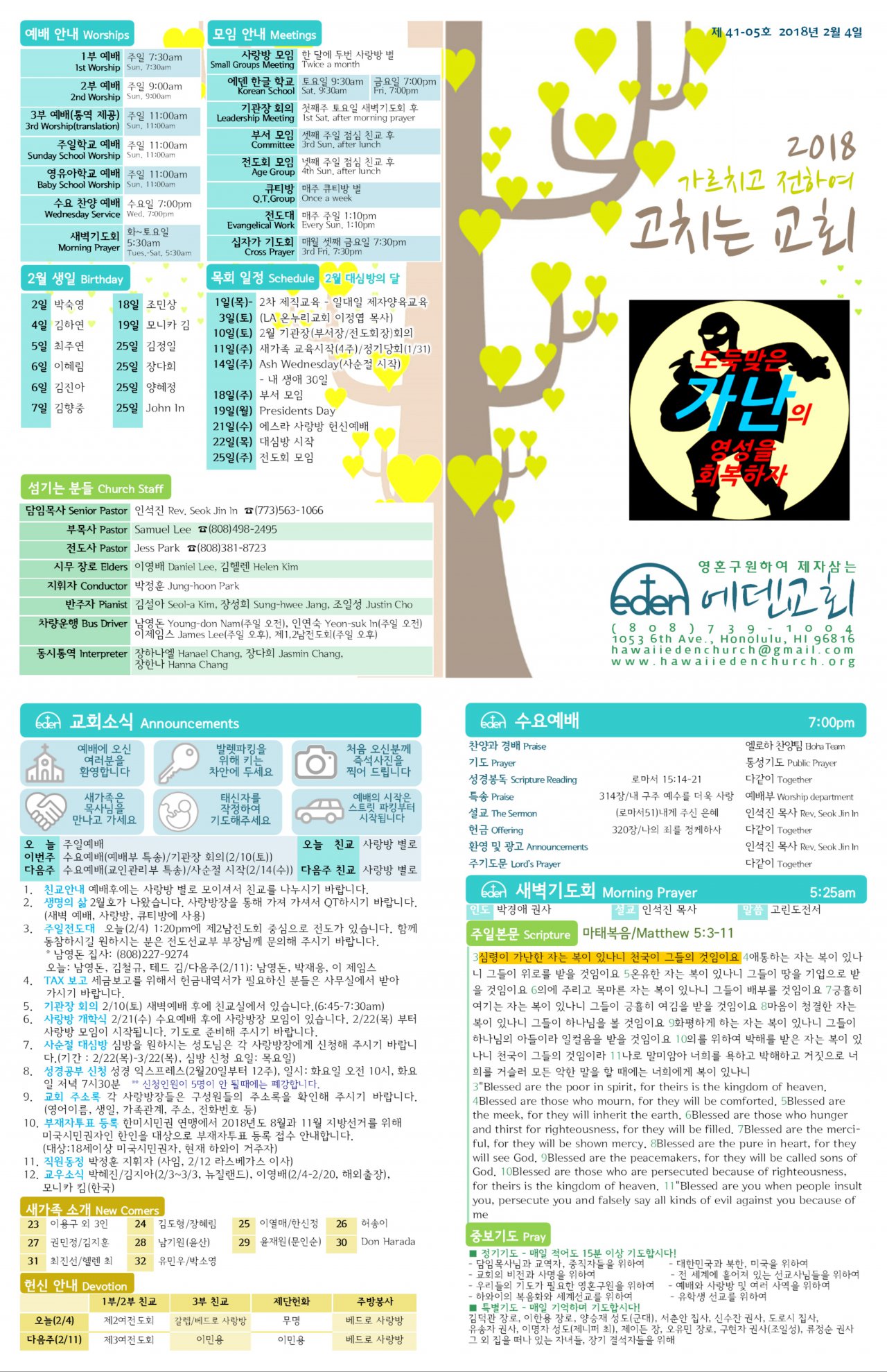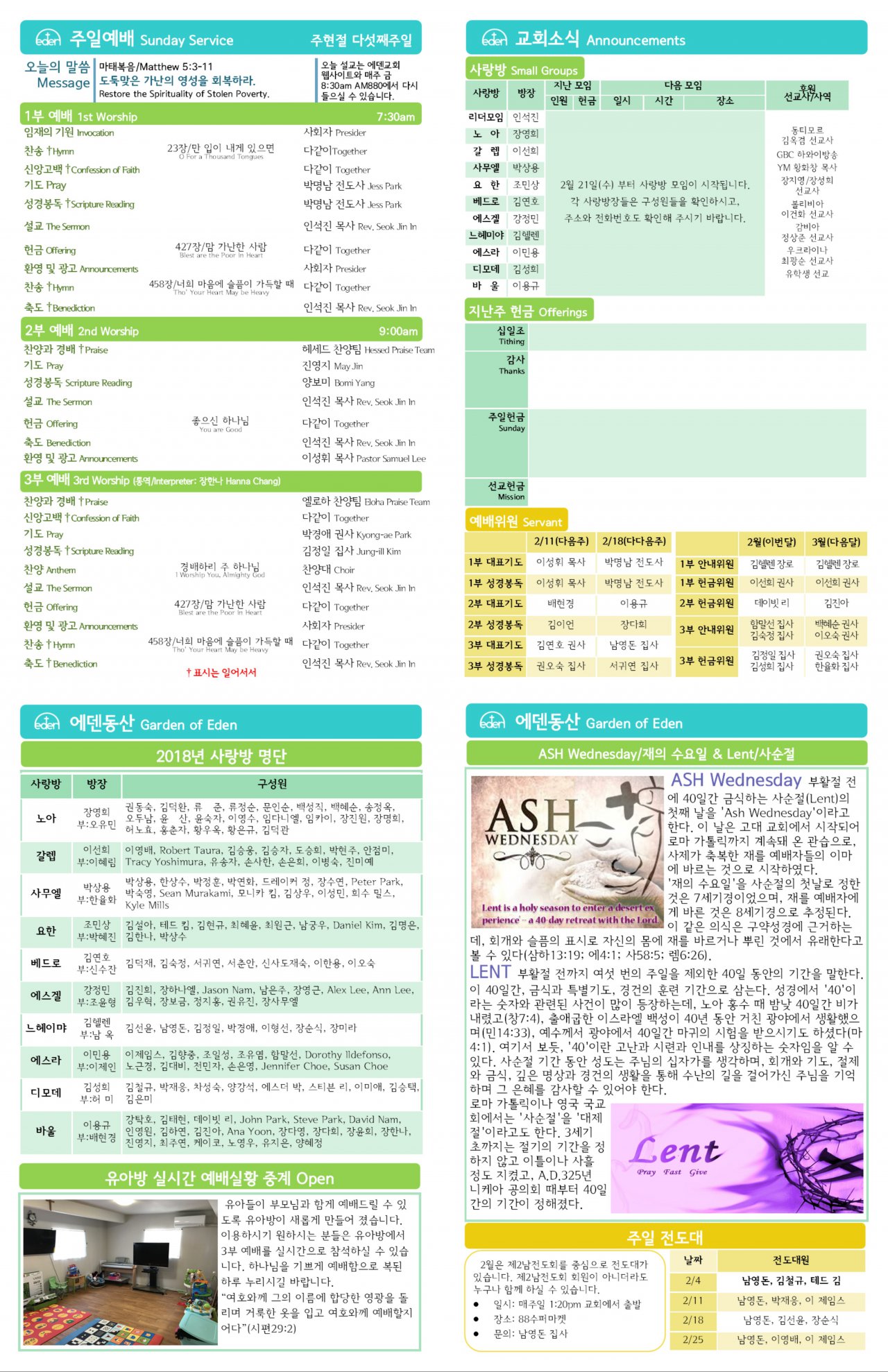2018/02/04 하와이한인교회 에덴장로교회 주보