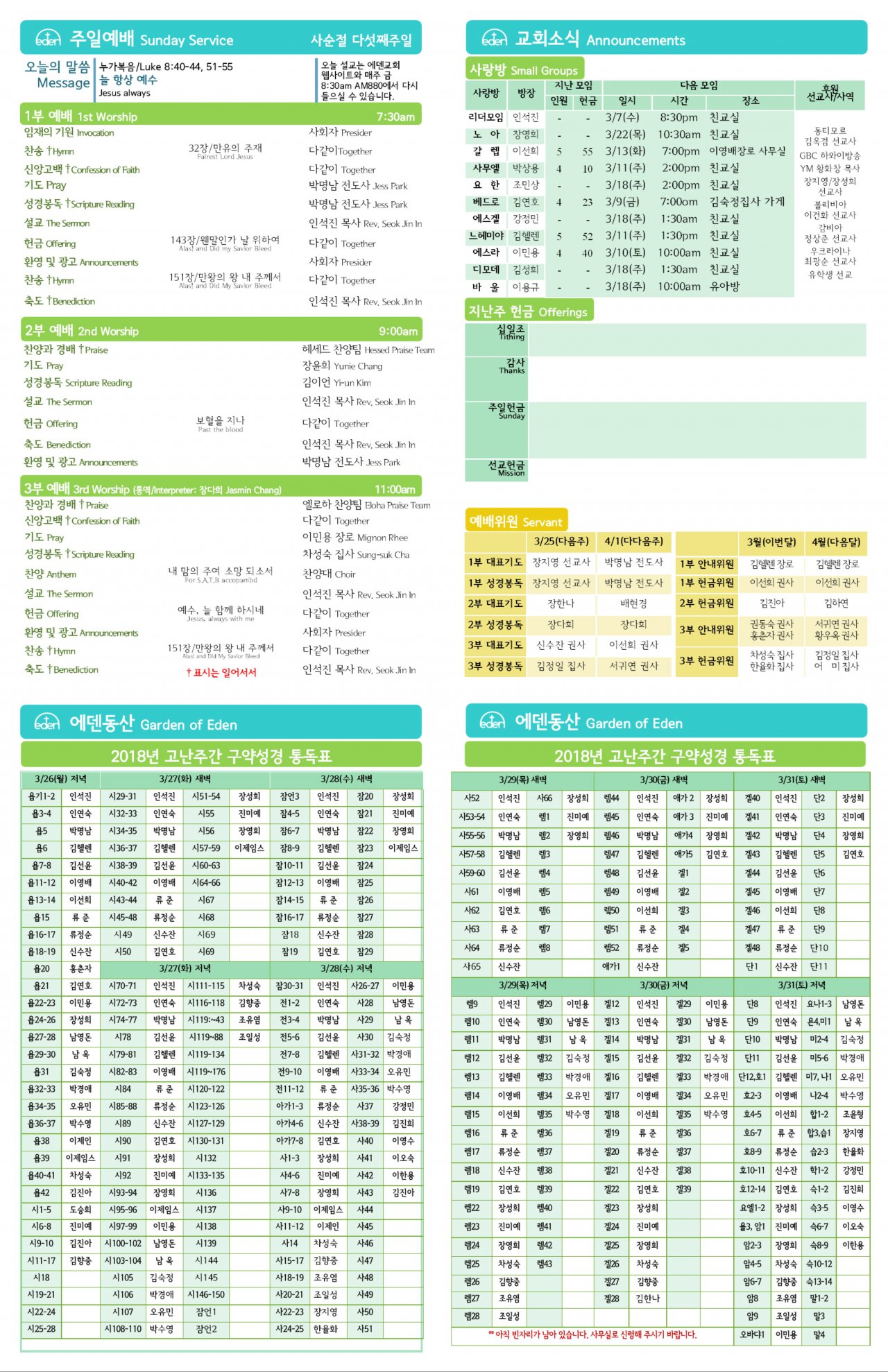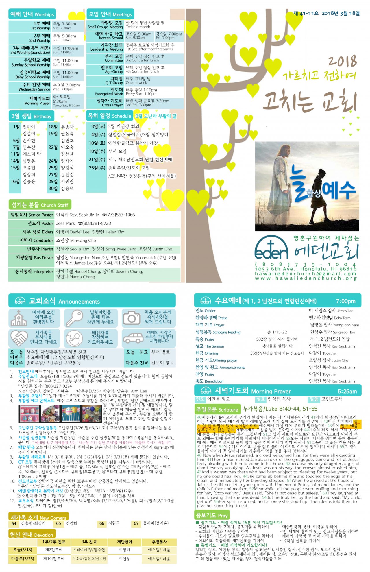 2018/03/18 하와이한인교회 에덴장로교회 주보