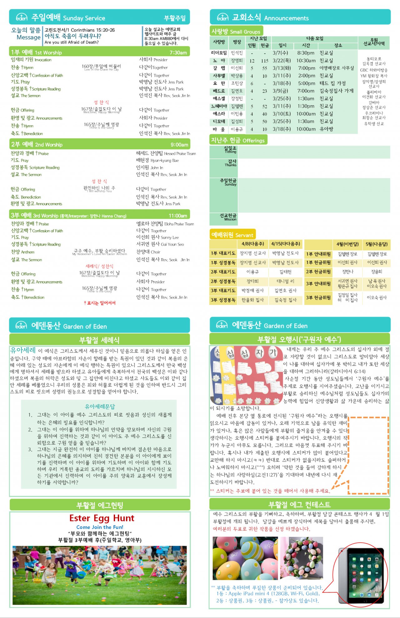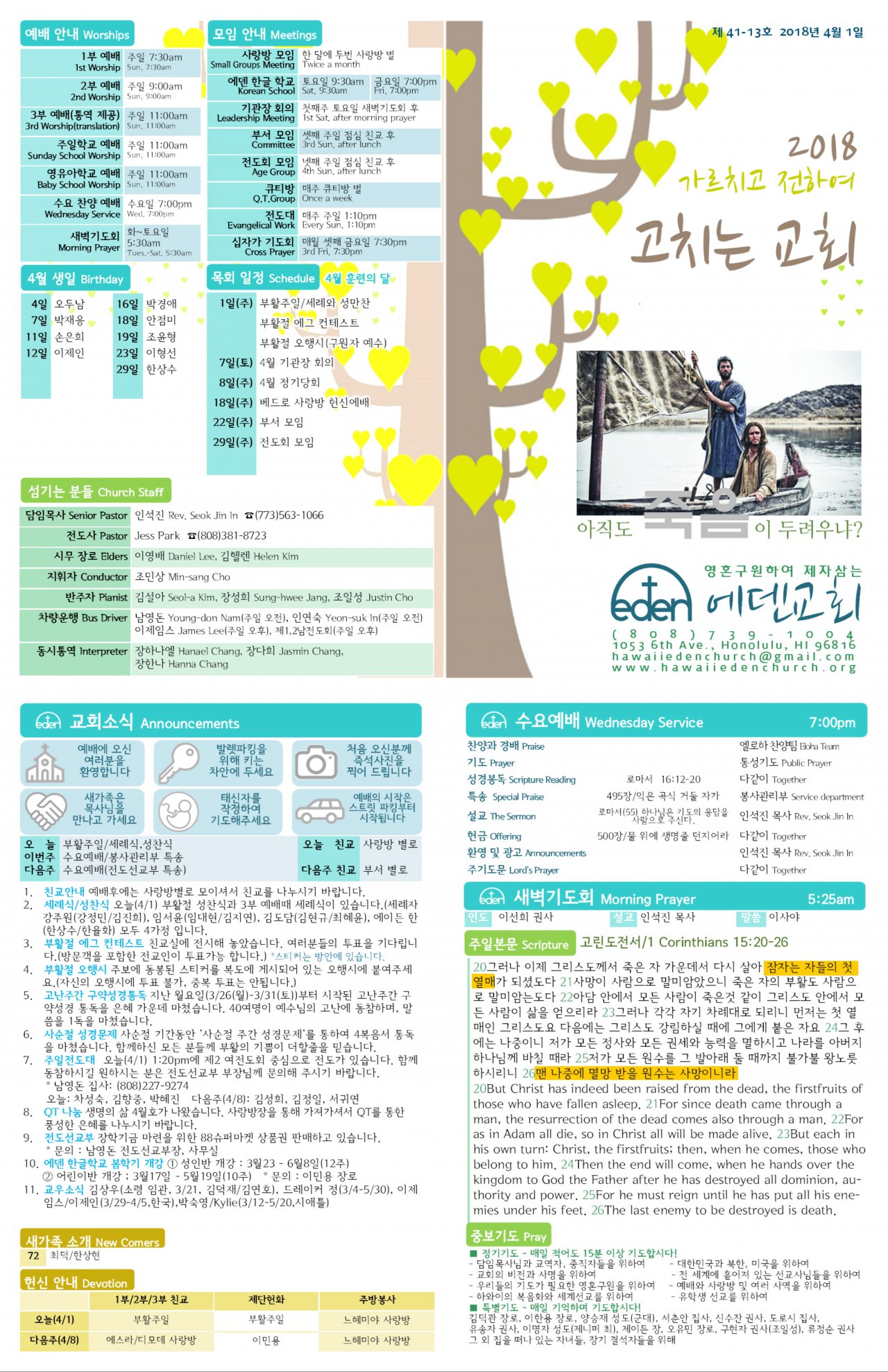 2018/04/01 하와이한인교회 에덴장로교회 주보