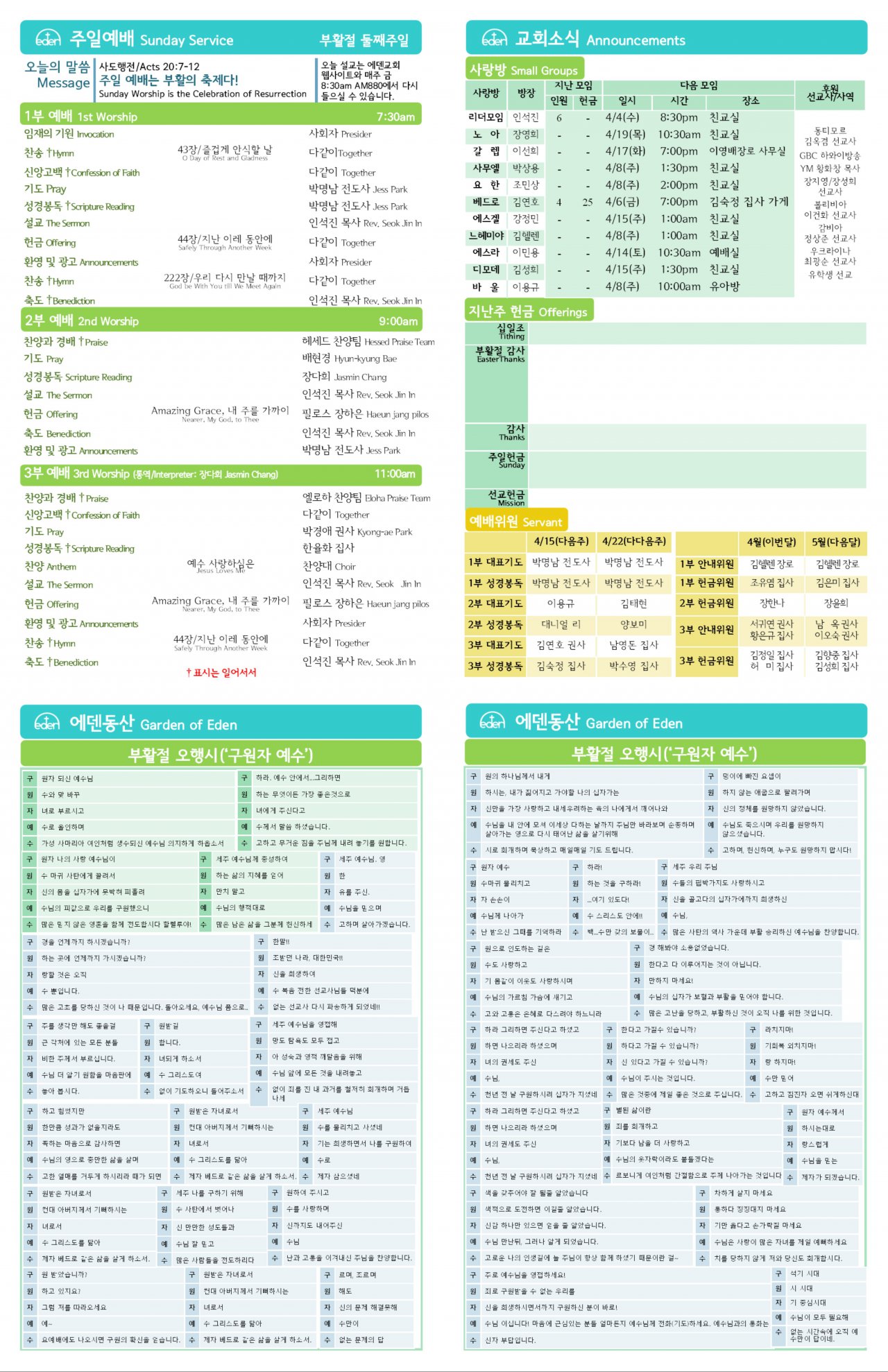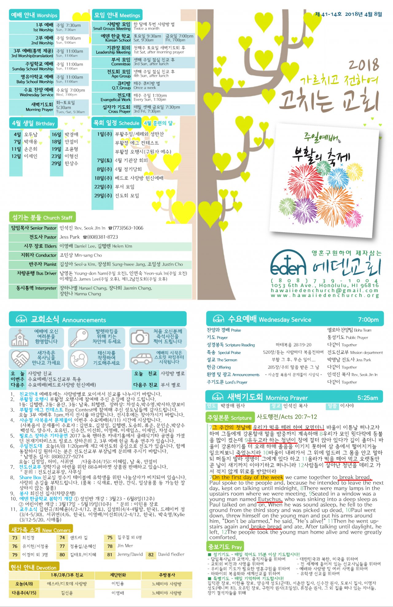 2018/04/08 하와이한인교회 에덴장로교회 주보