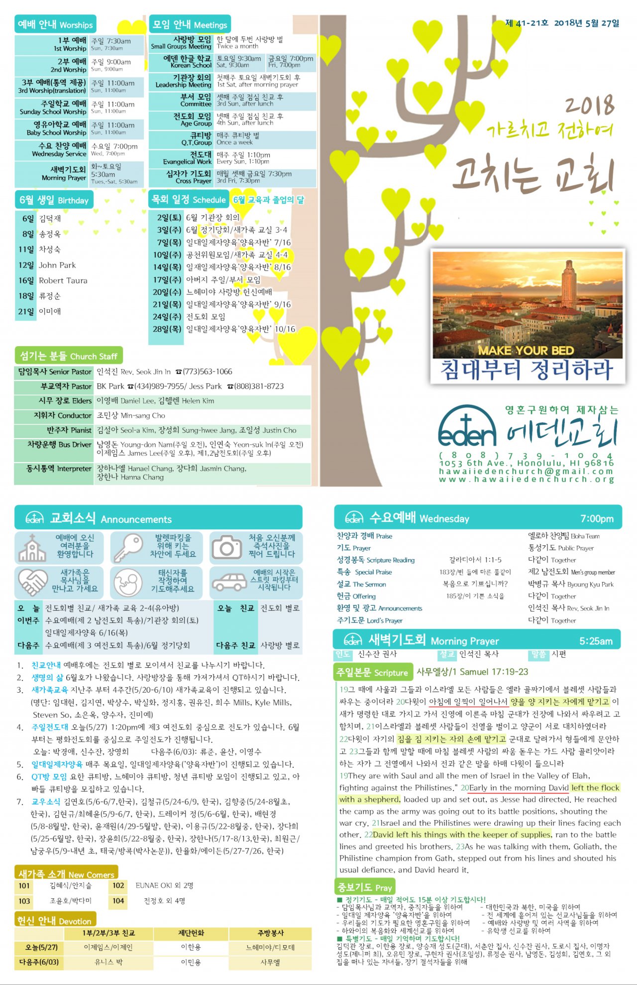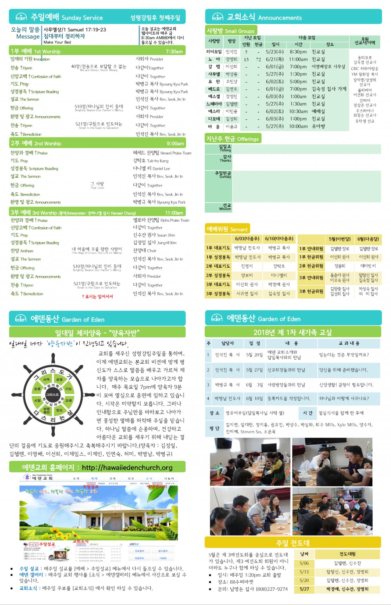 2018/05/27 하와이한인교회 에덴장로교회 주보