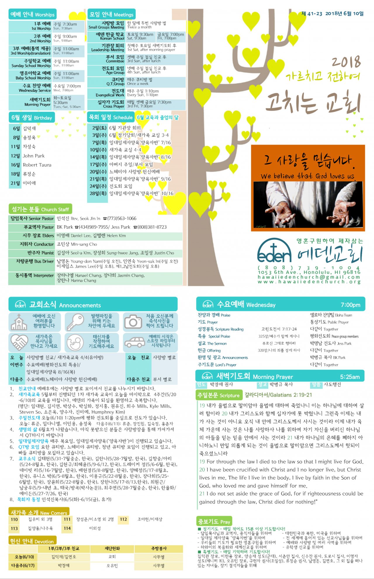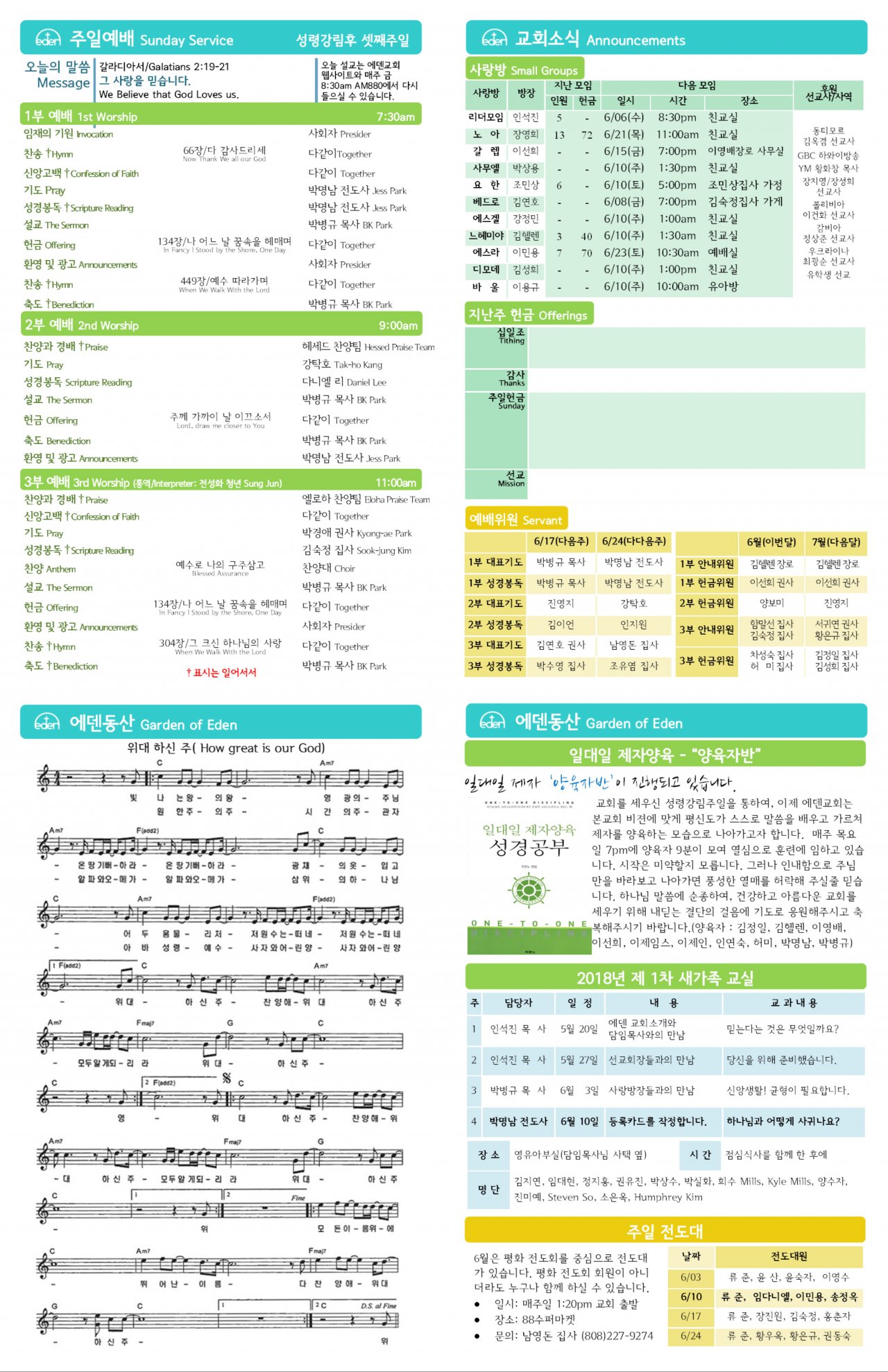 2018/06/10 하와이한인교회 에덴장로교회 주보