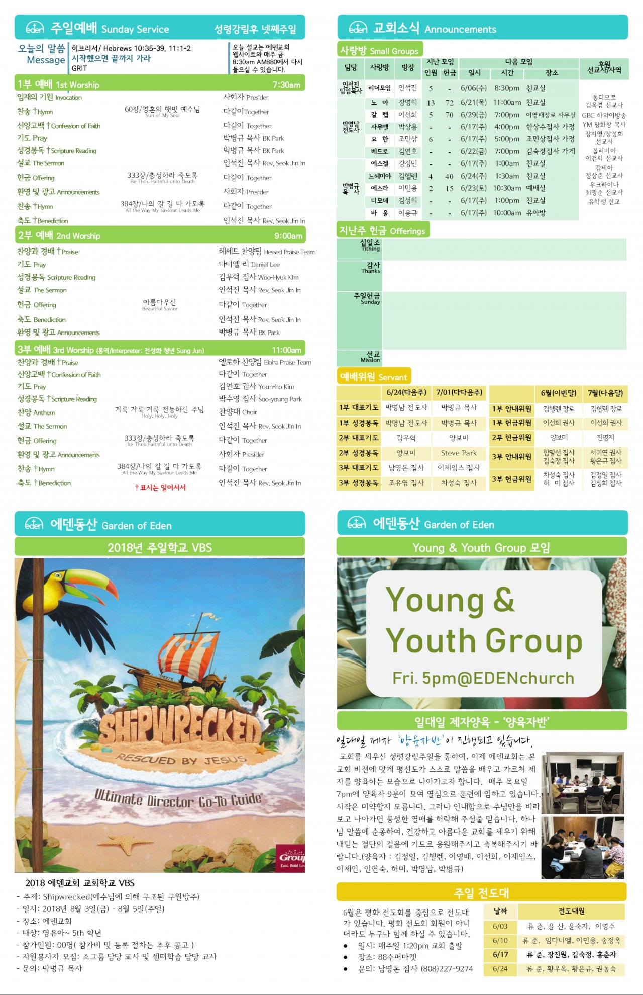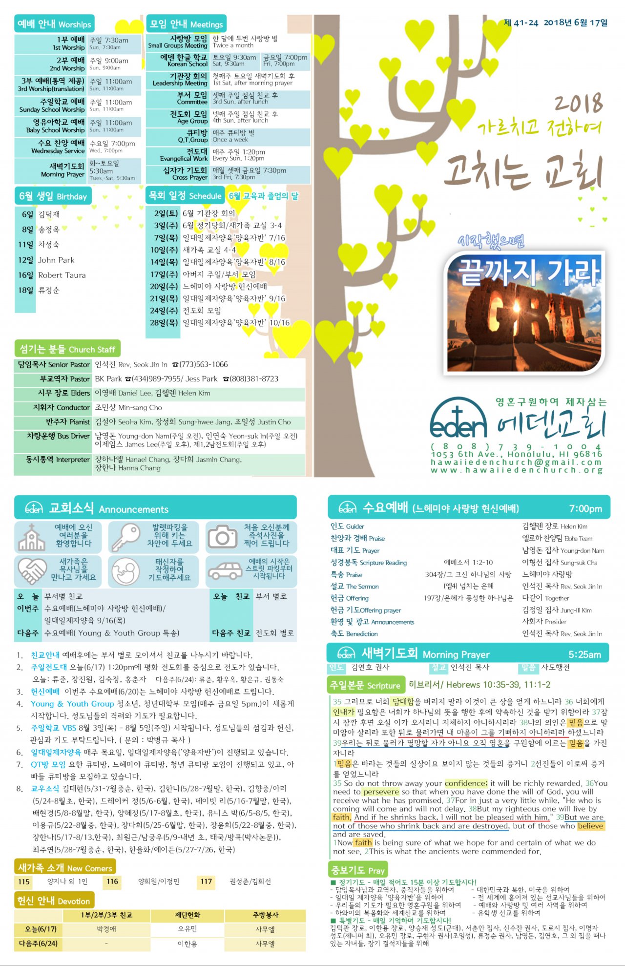 2018/06/17 하와이한인교회 에덴장로교회 주보