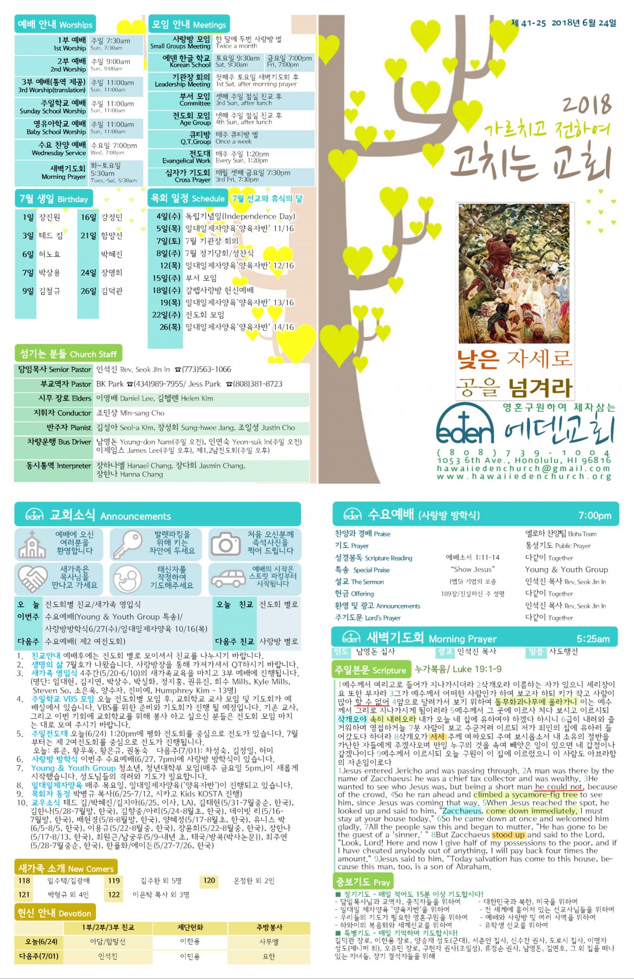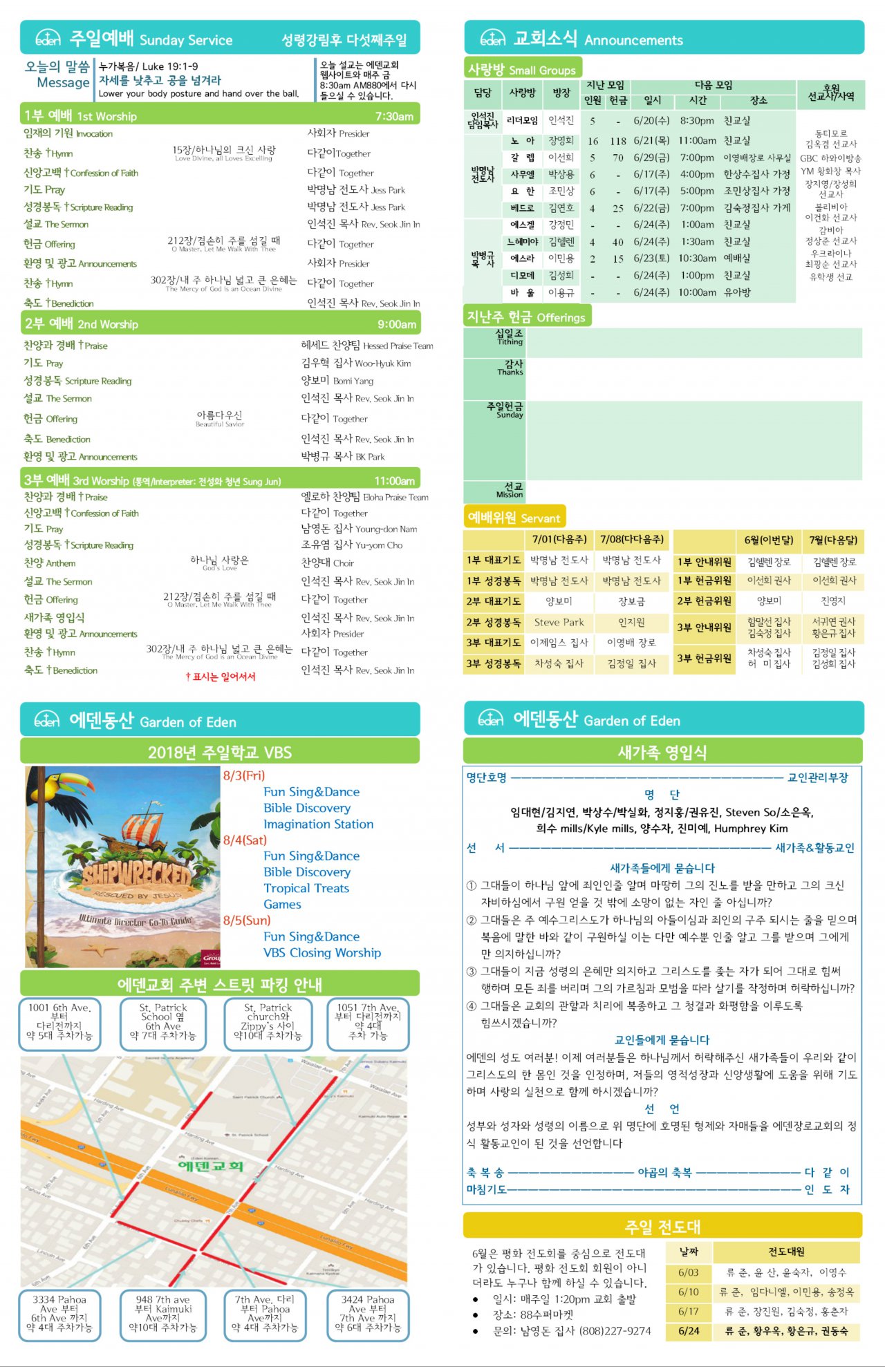 2018/06/24 하와이한인교회 에덴장로교회 주보