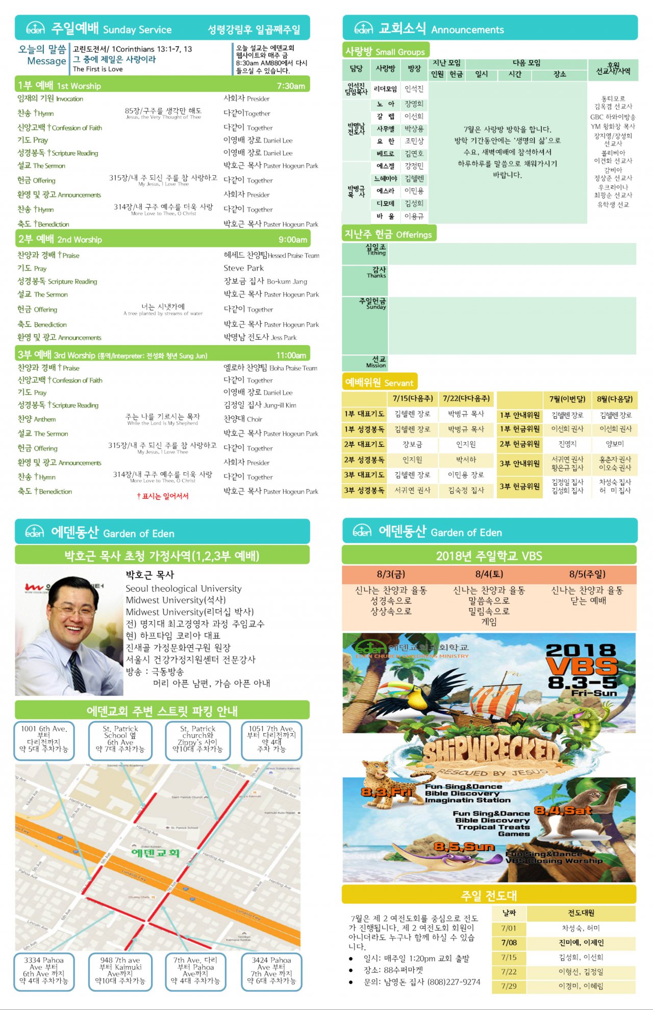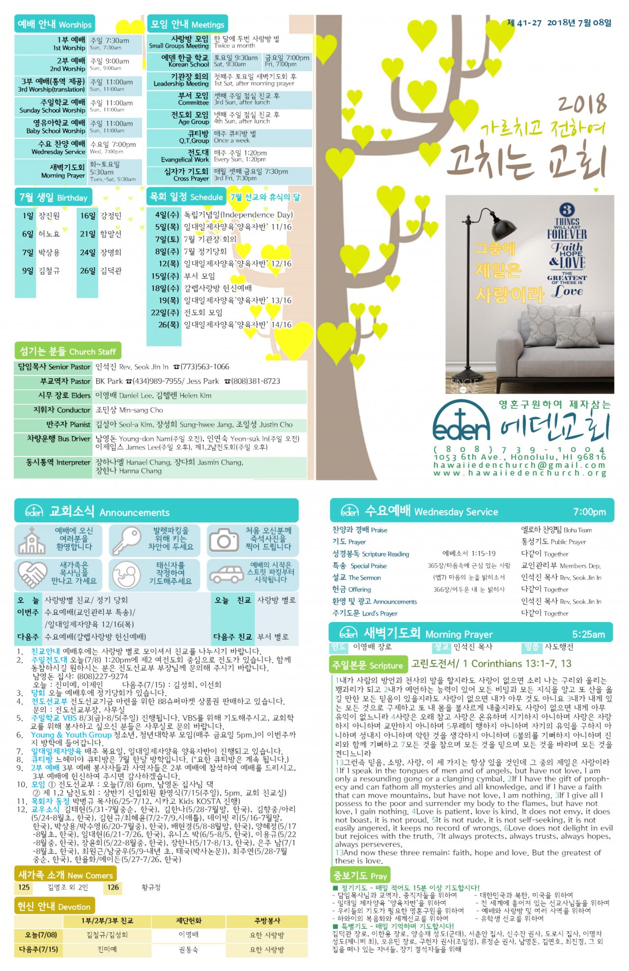 2018/07/08 하와이한인교회 에덴장로교회 주보