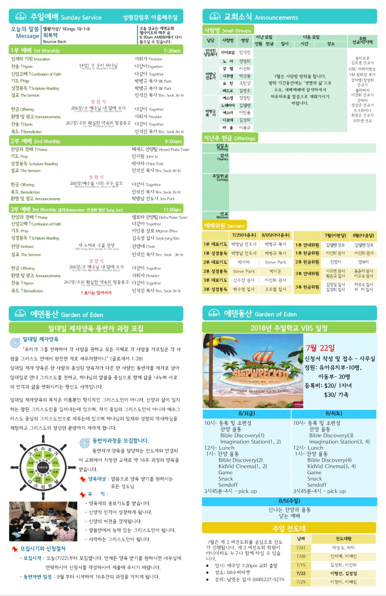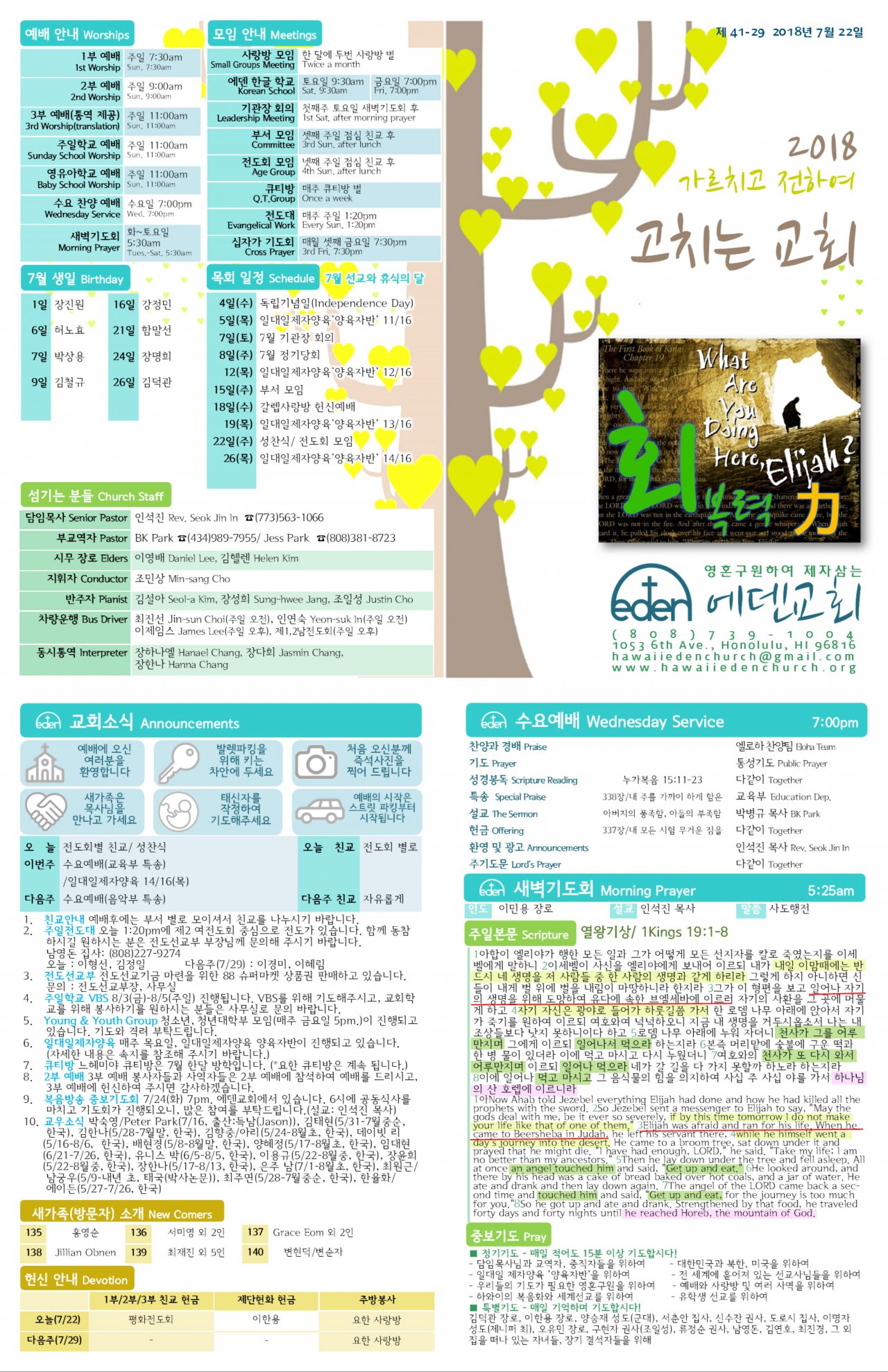 2018/07/22 하와이한인교회 에덴장로교회 주보