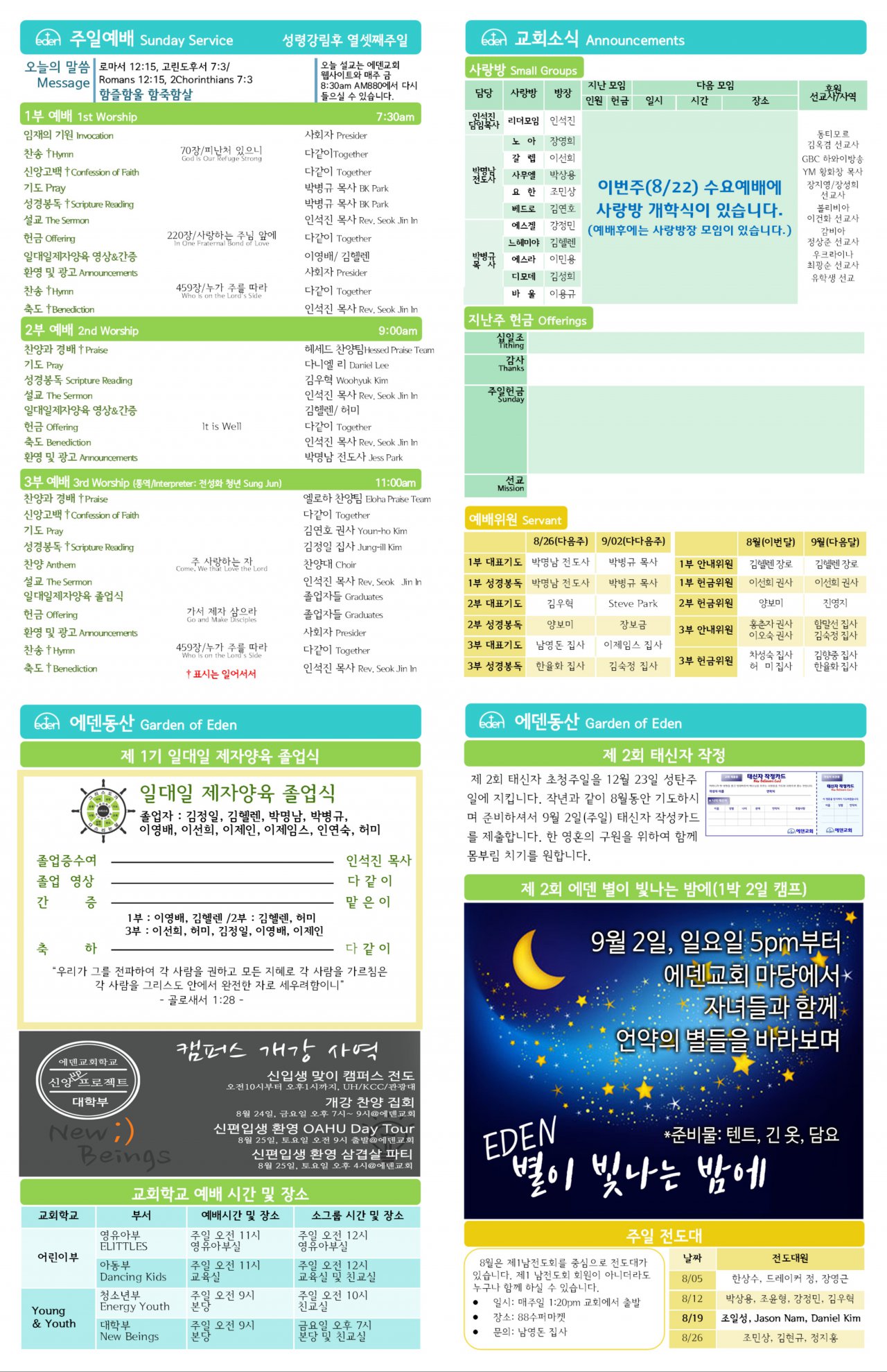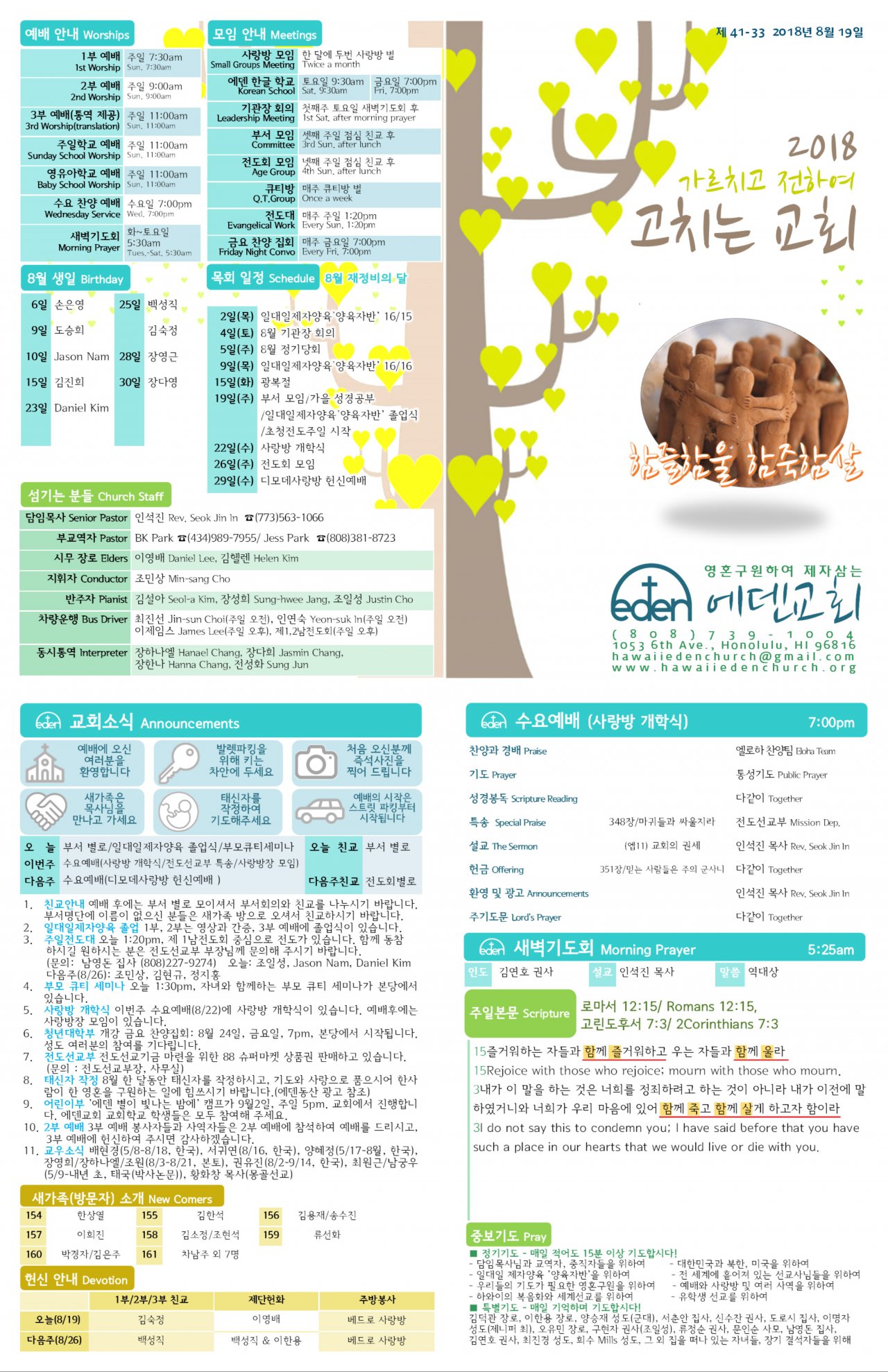 2018/08/19 하와이한인교회 에덴장로교회 주보