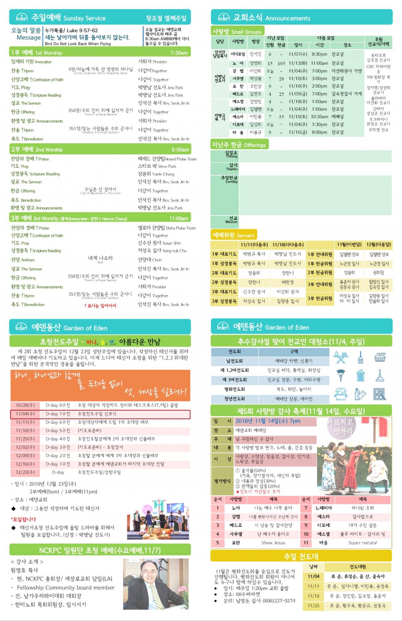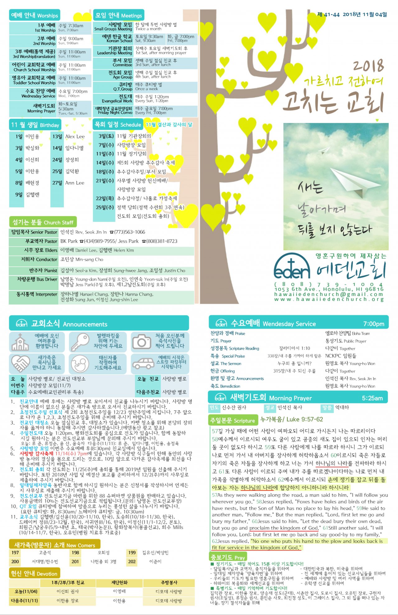 2018/11/04 하와이한인교회 에덴장로교회 주보