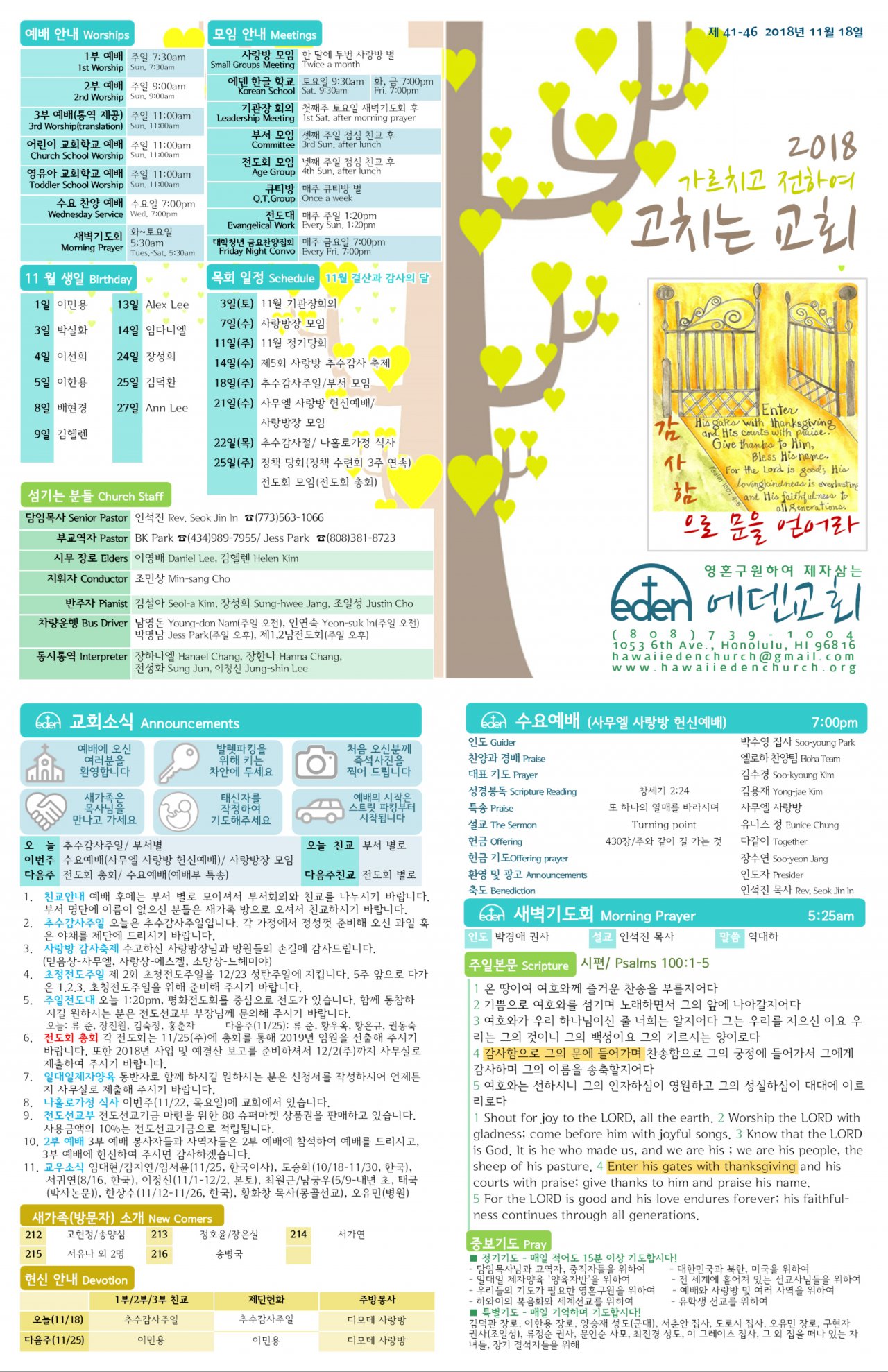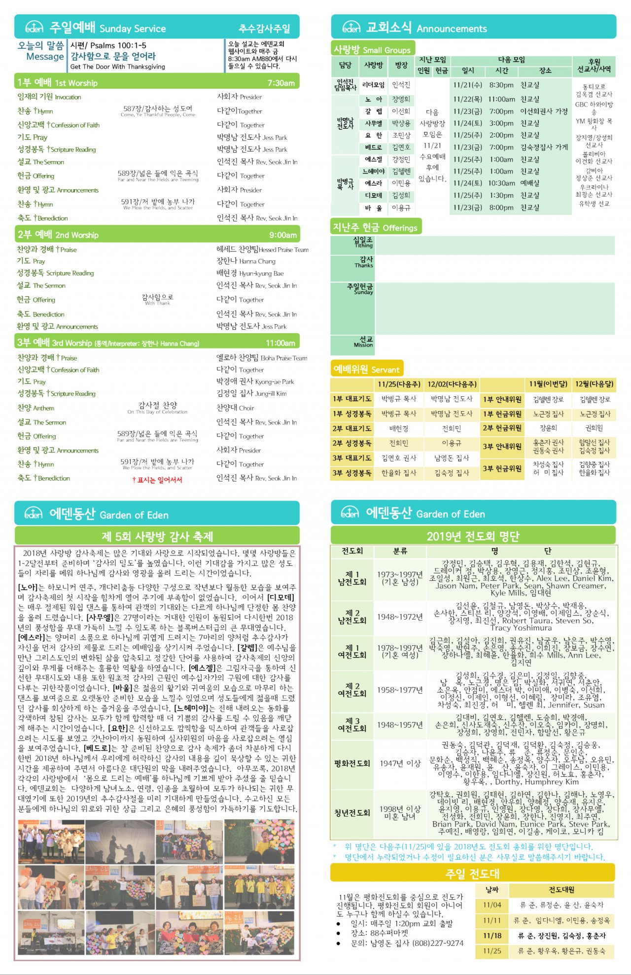 2018/11/18 하와이한인교회 에덴장로교회 주보