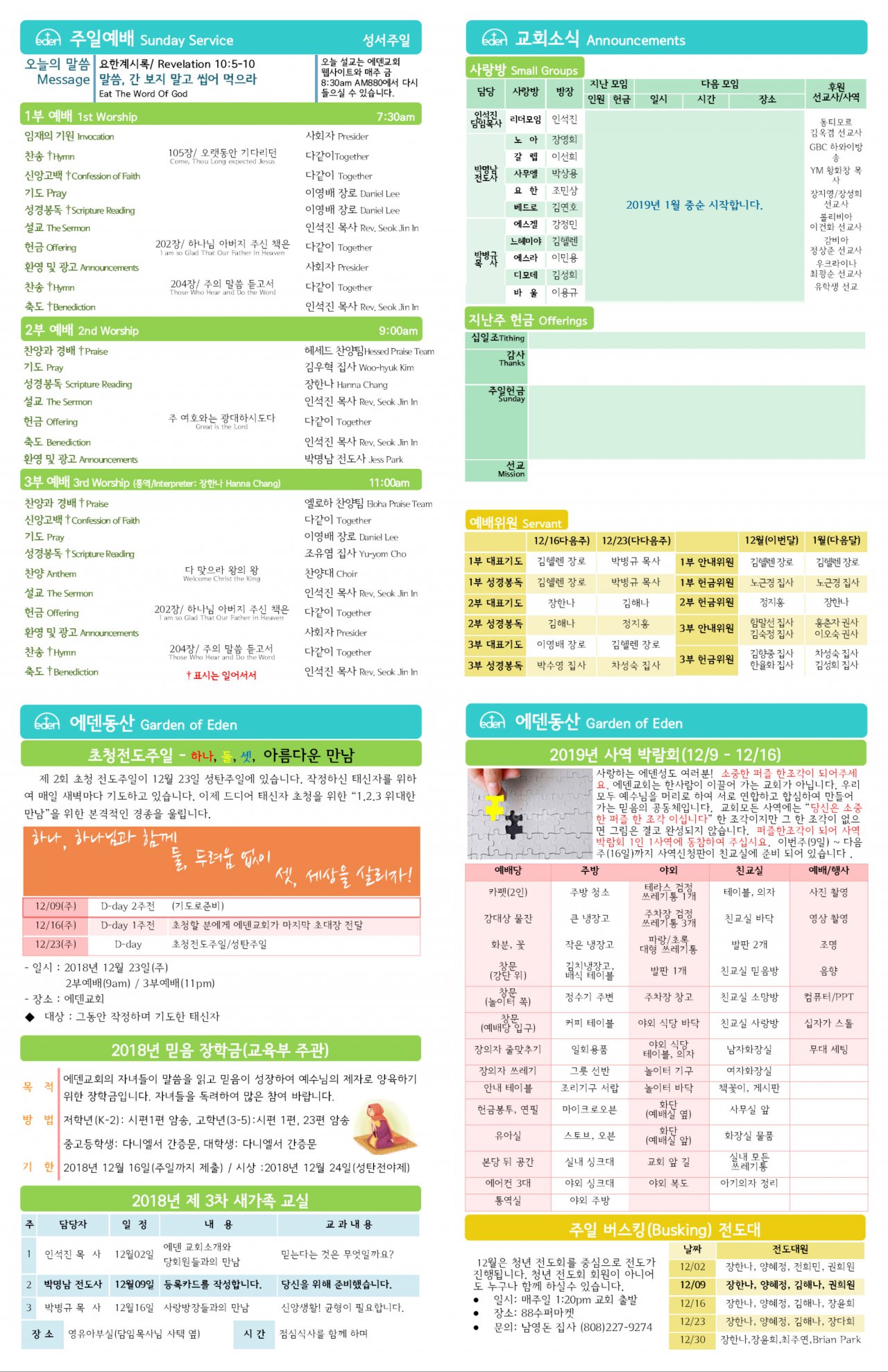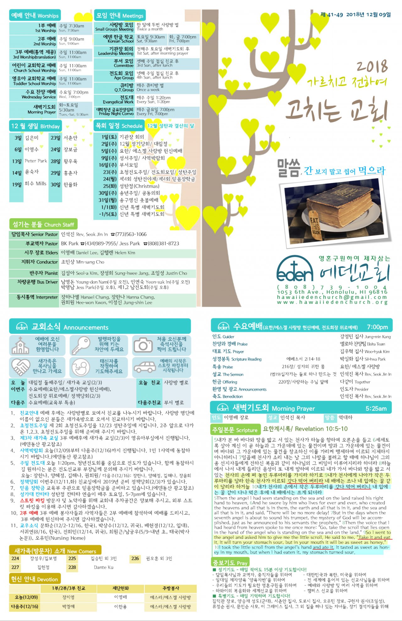 2018/12/09 하와이한인교회 에덴장로교회 주보