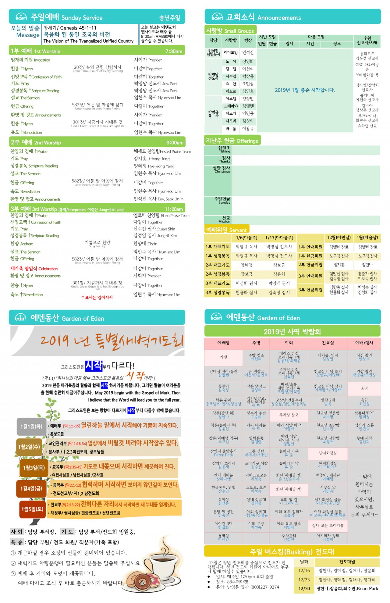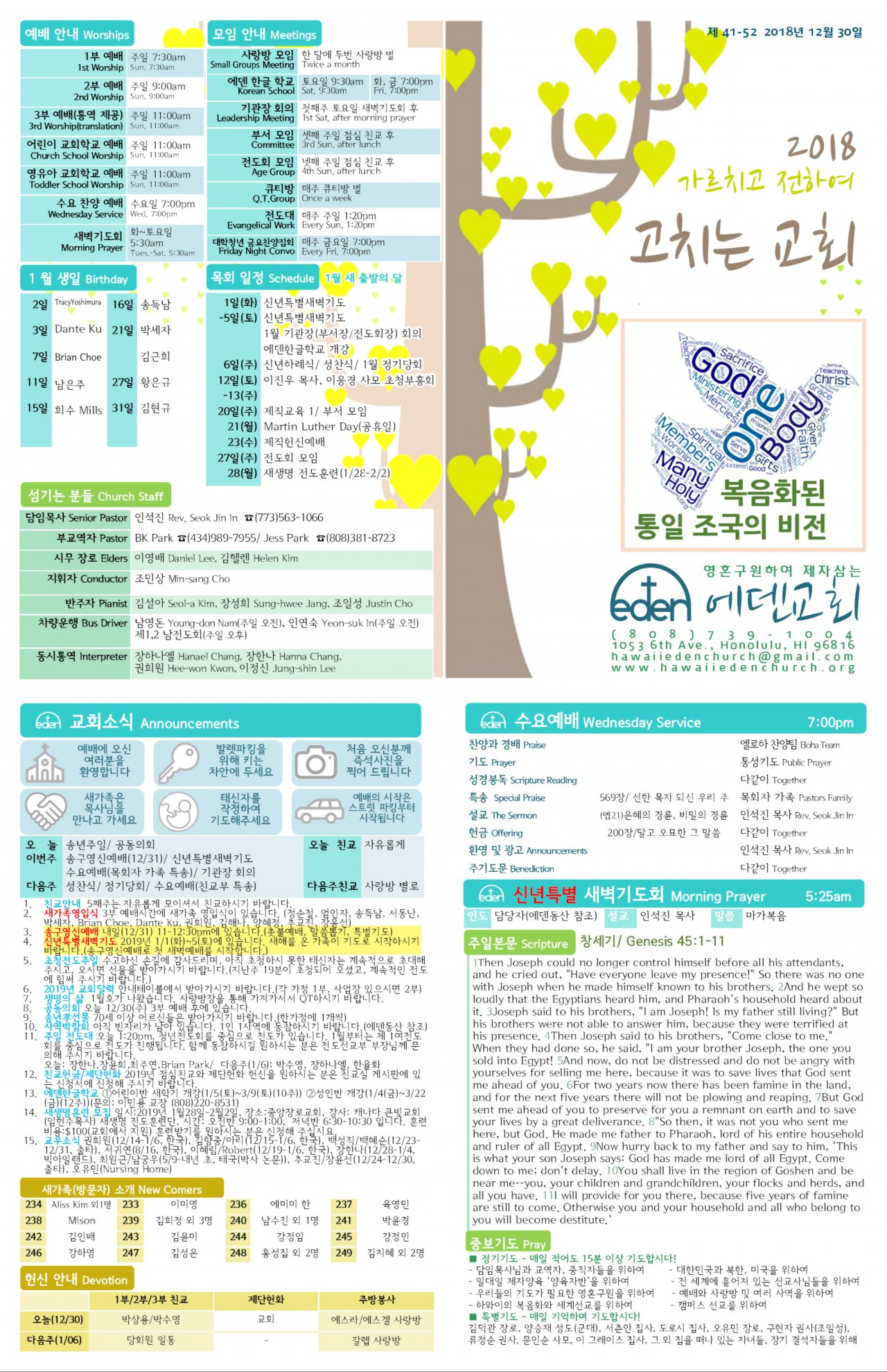 2018/12/30 하와이한인교회 에덴장로교회 주보
