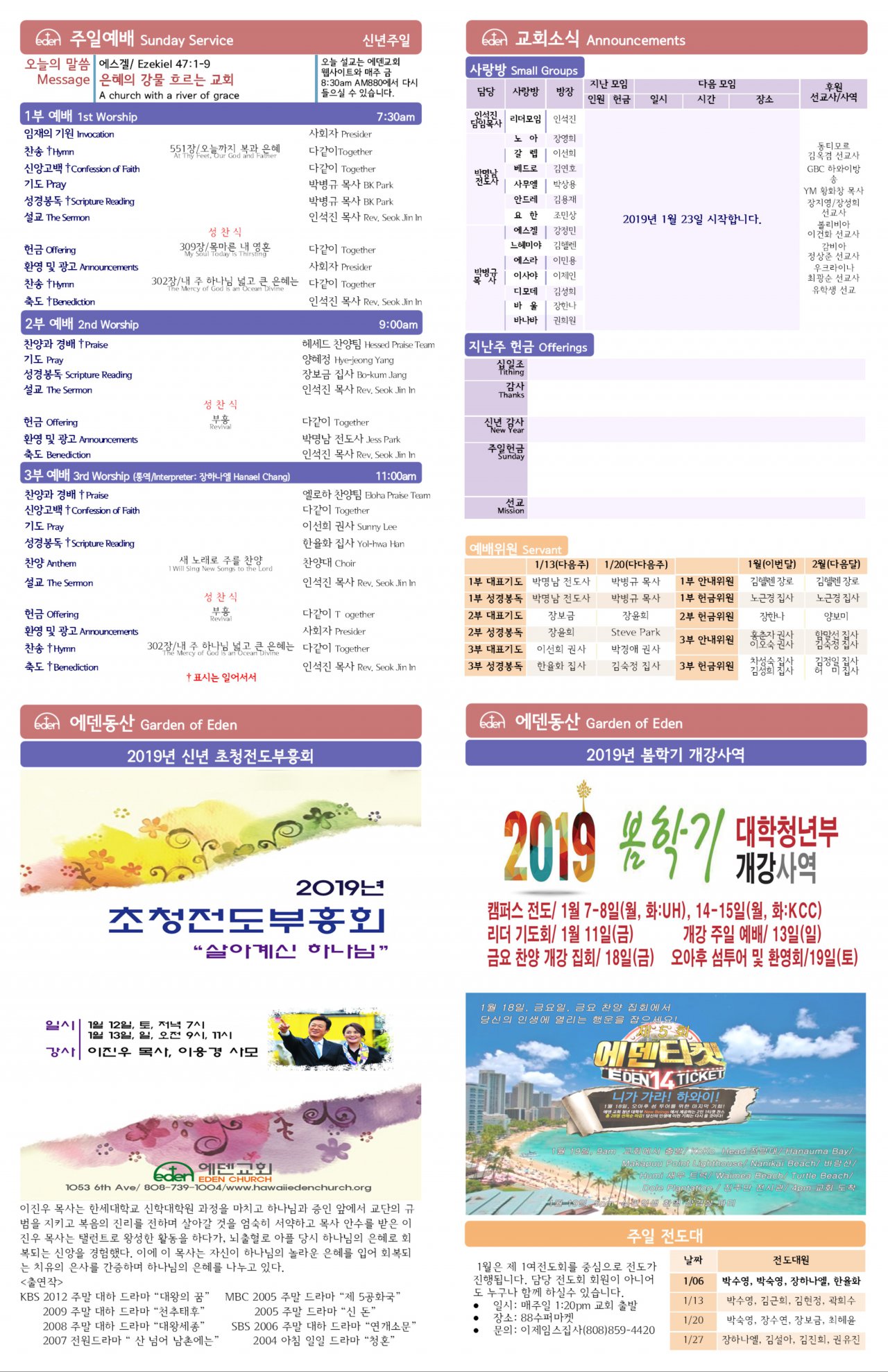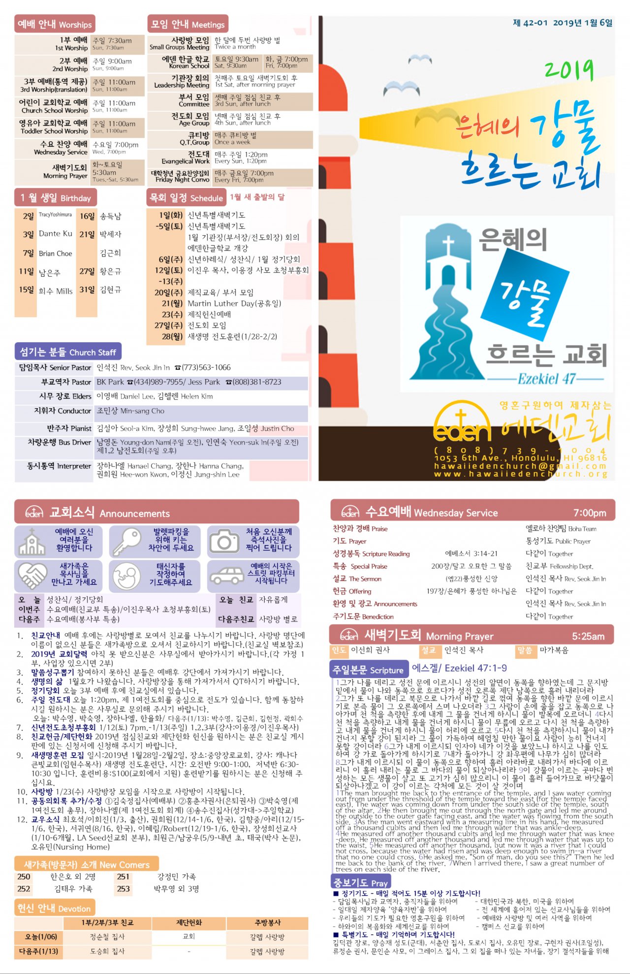 2019/1/06 하와이한인교회 에덴장로교회 주보
