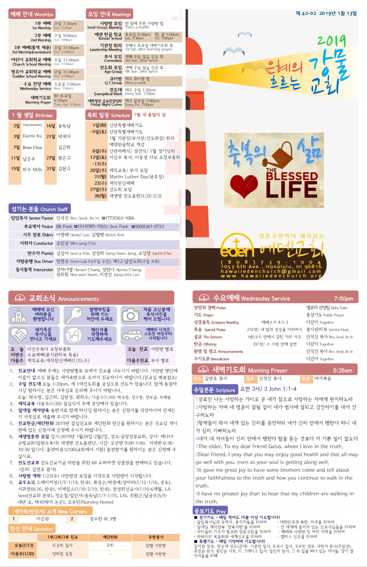 2019/1/13 하와이한인교회 에덴장로교회 주보