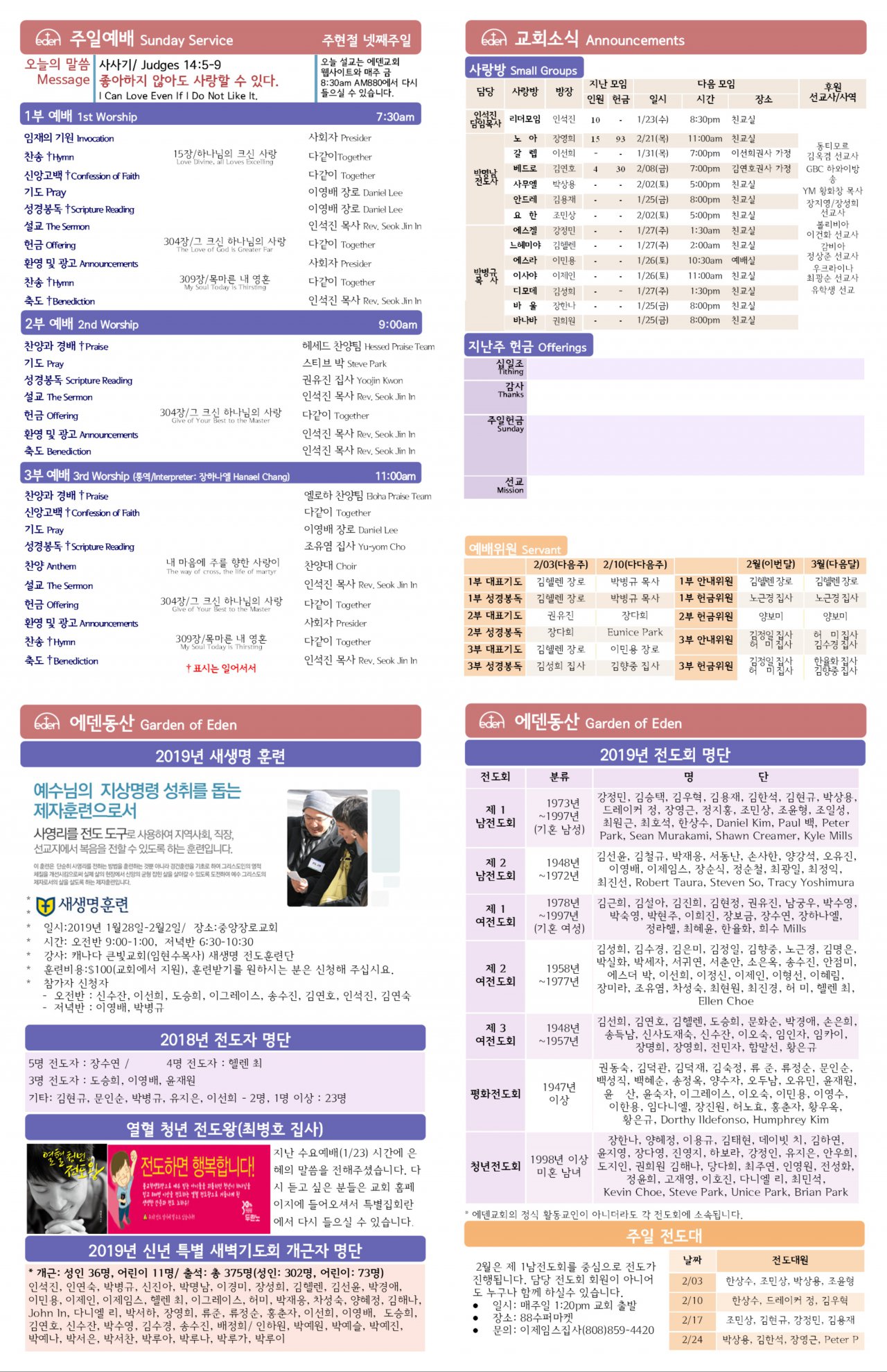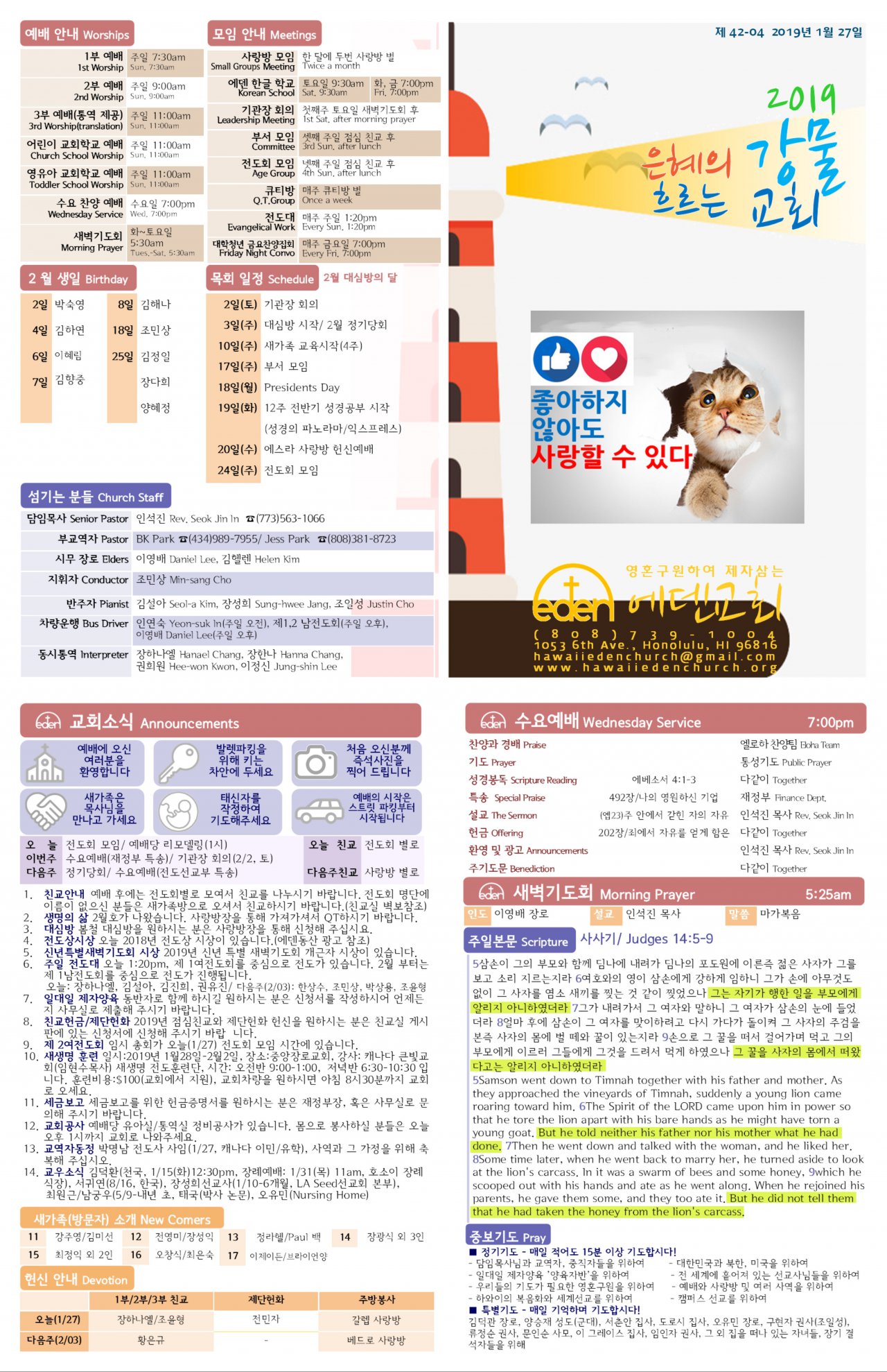 2019/1/27 하와이한인교회 에덴장로교회 주보
