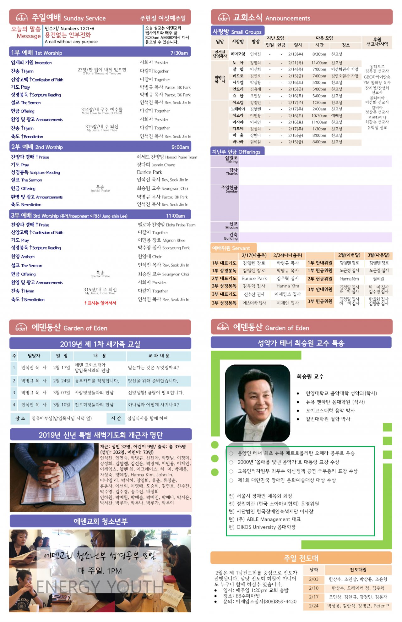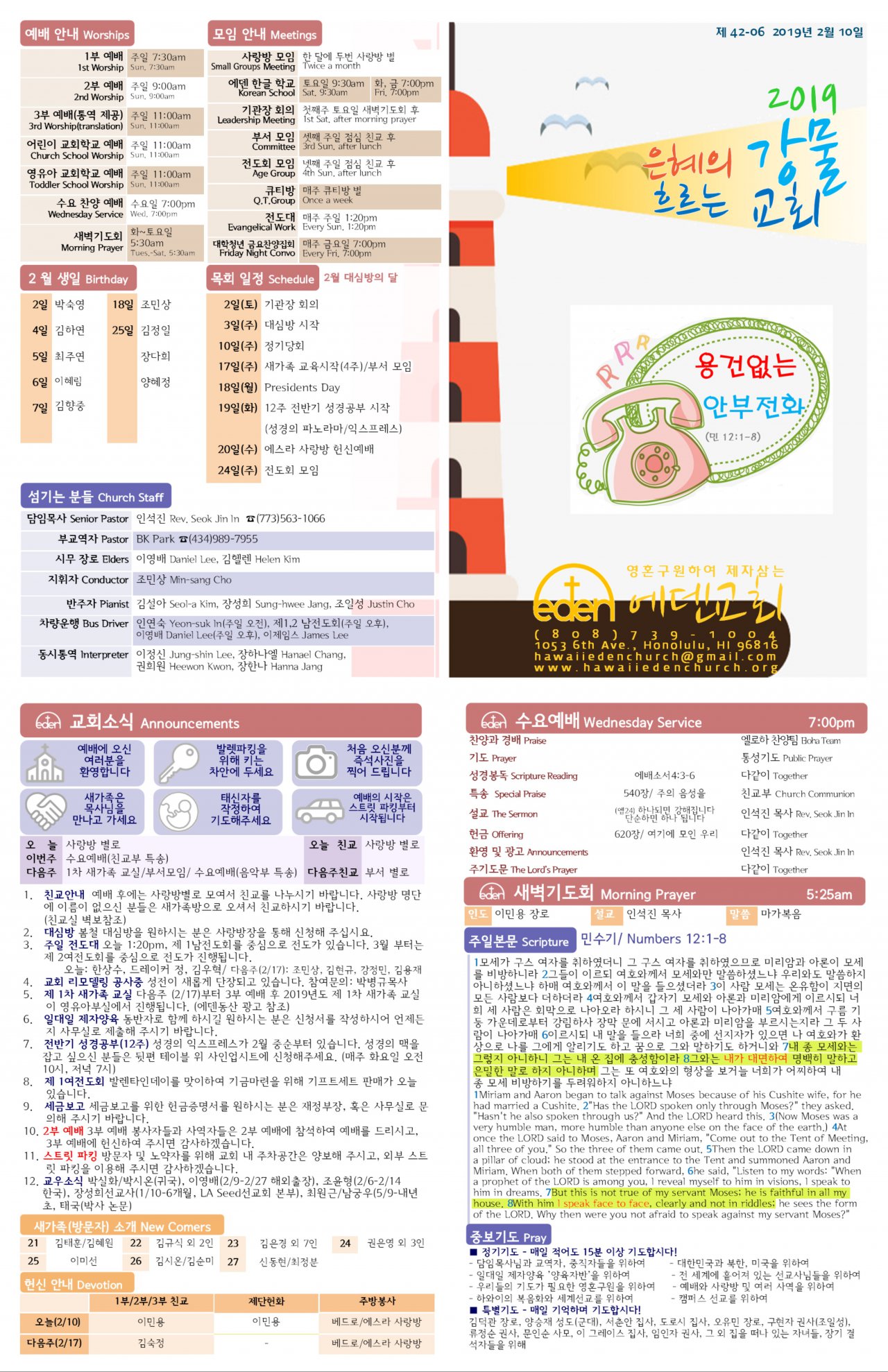 2019/2/10 하와이한인교회 에덴장로교회 주보