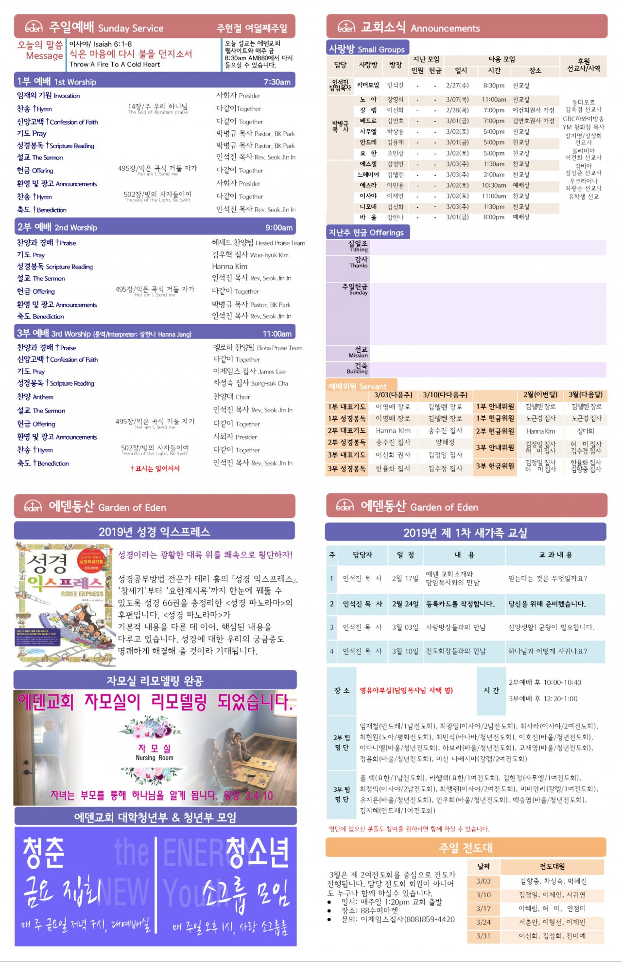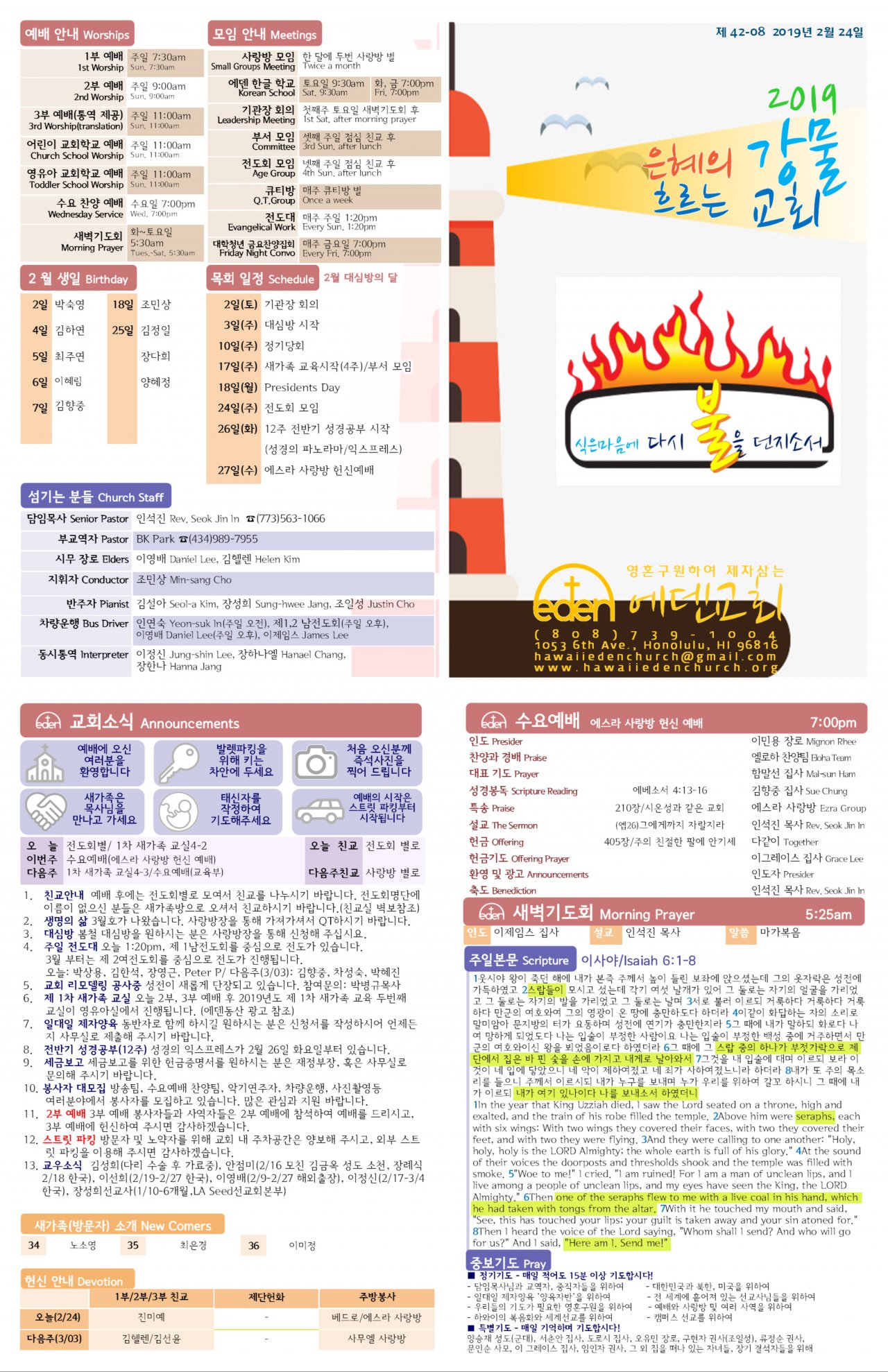 2019/2/24 하와이한인교회 에덴장로교회 주보