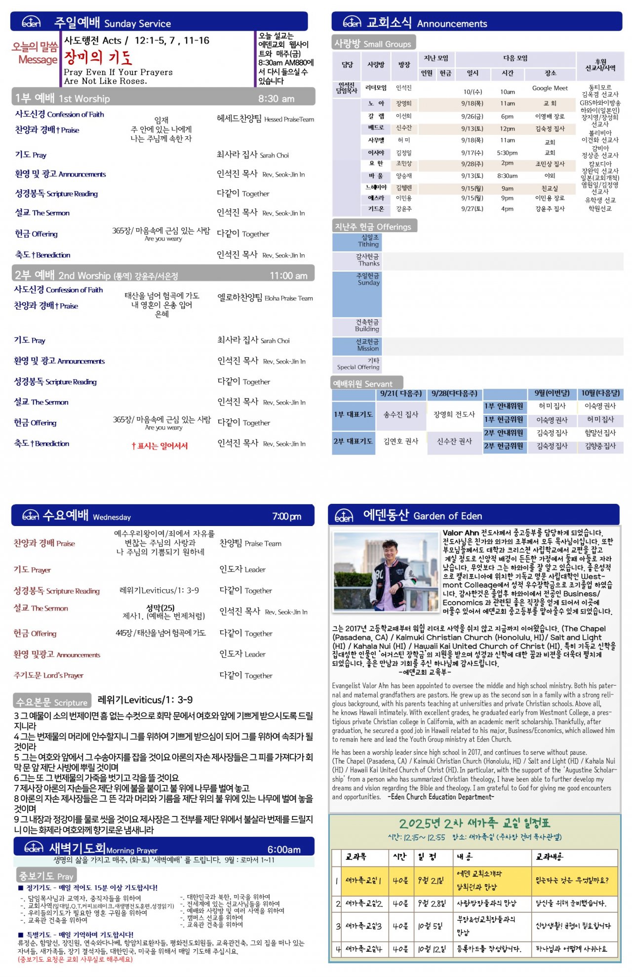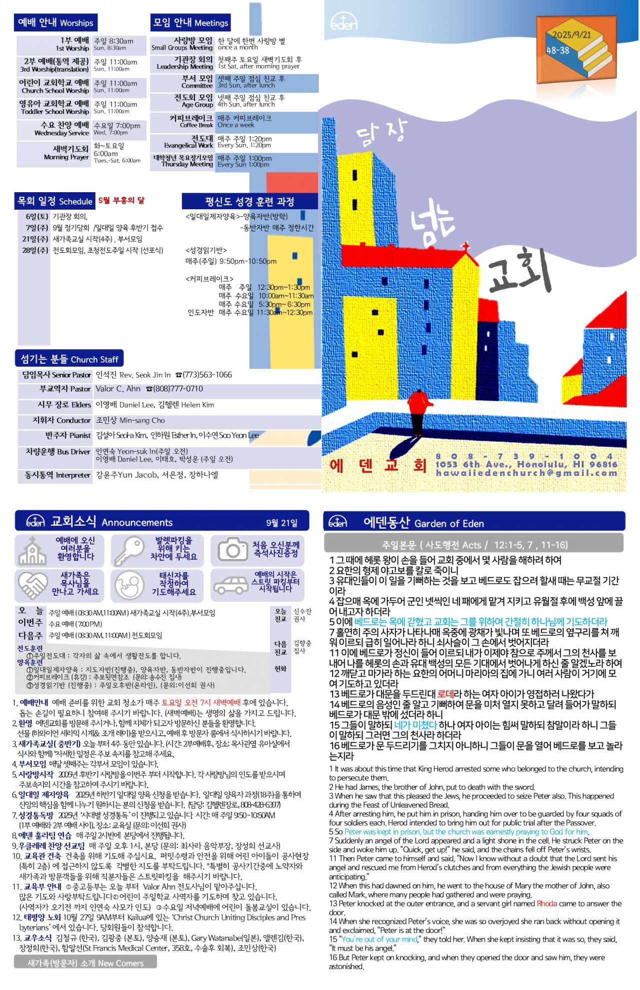 2025/ 9/ 21 하와이한인교회 에덴장로교회 주보