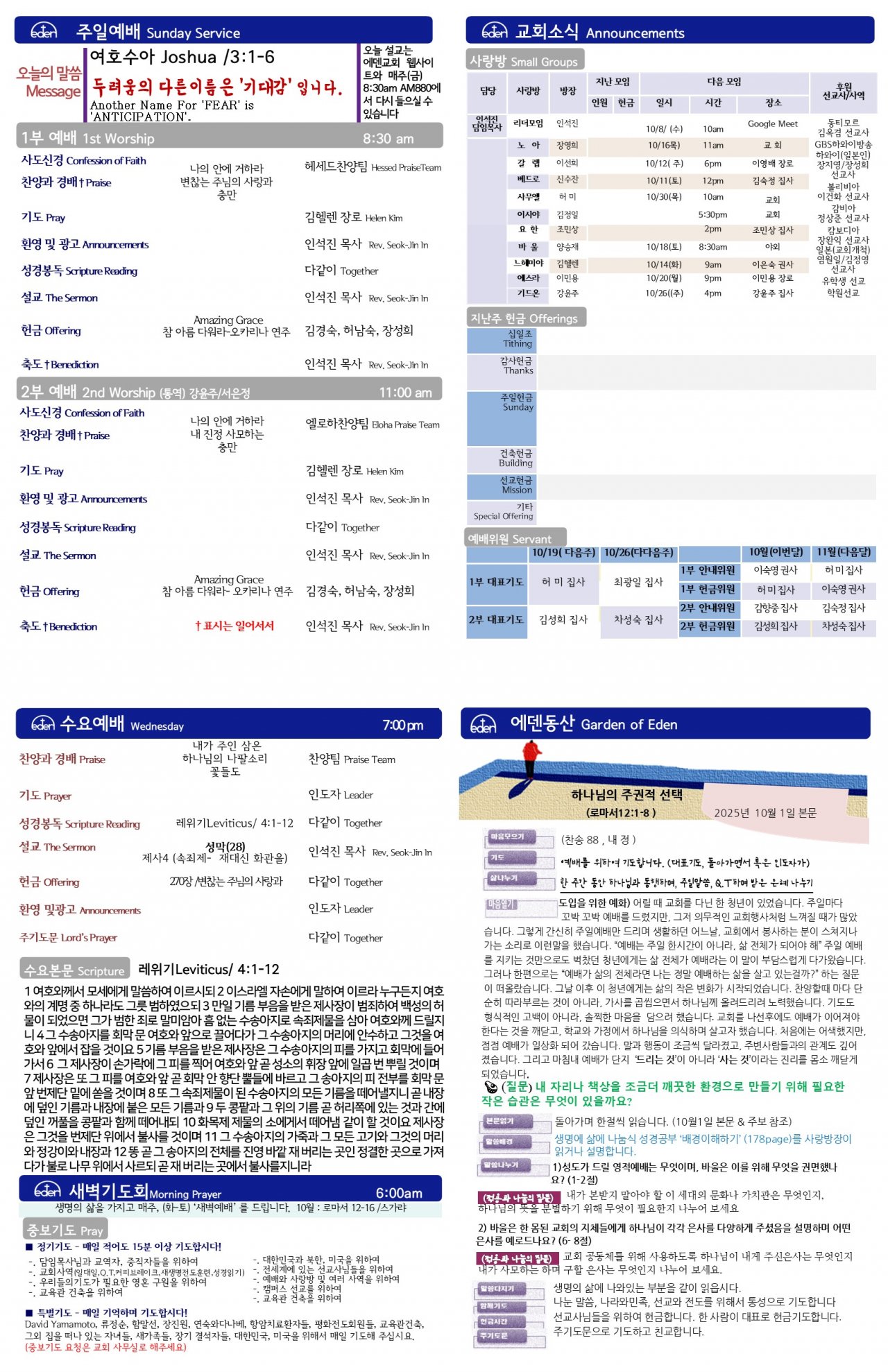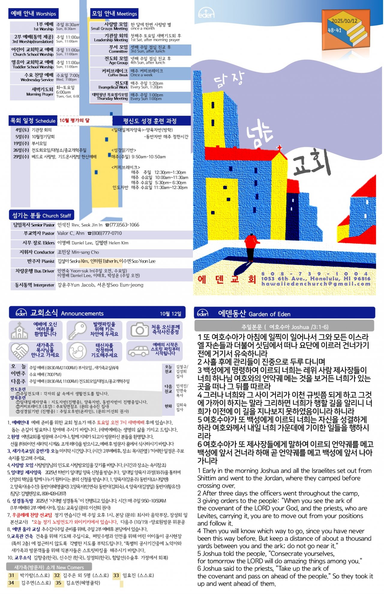 2025/ 10/ 12 하와이한인교회 에덴장로교회 주보