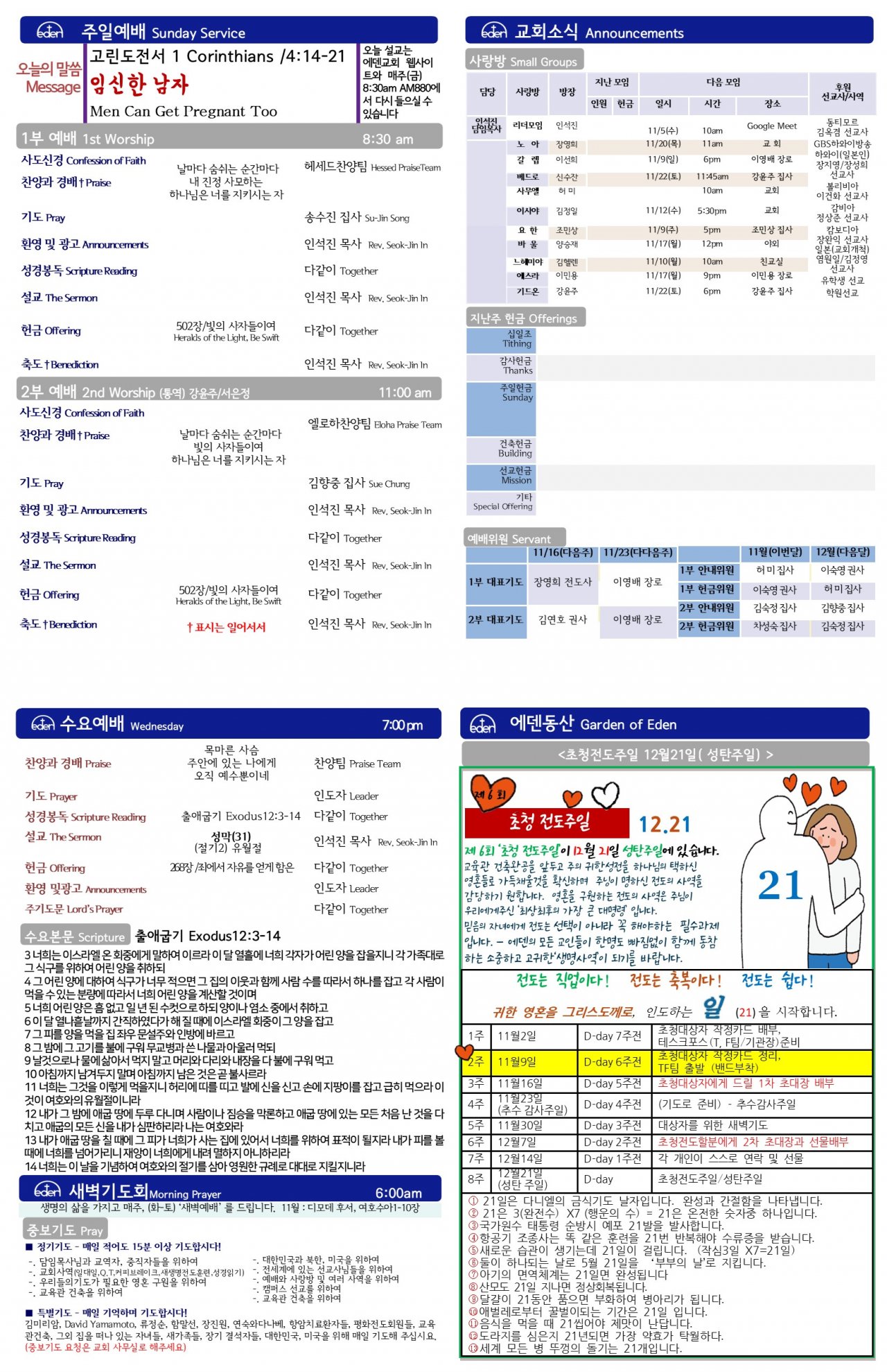 2025/ 11/ 09 하와이한인교회 에덴장로교회 주보