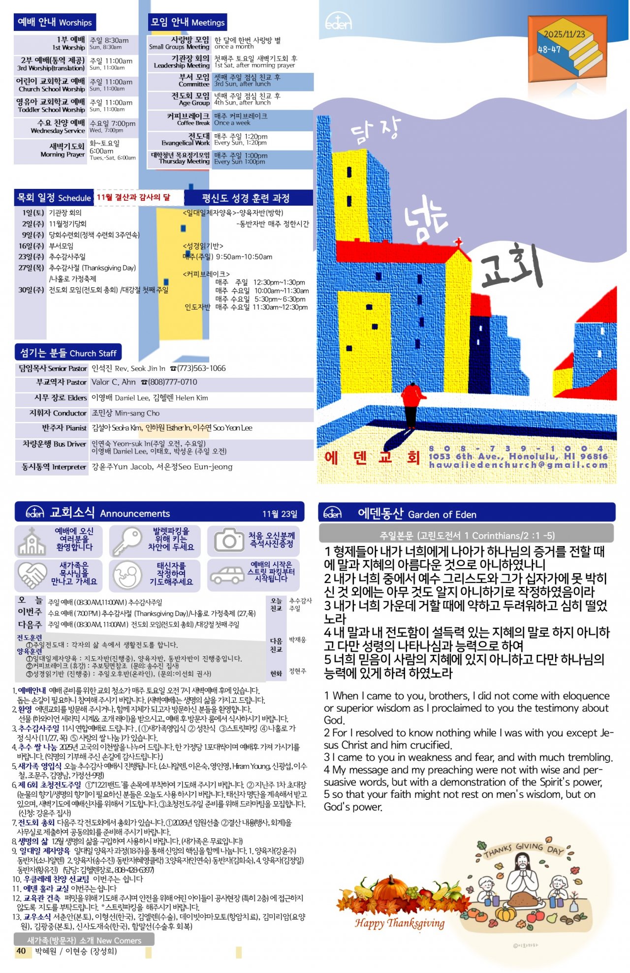 2025/ 11/ 23 하와이한인교회 에덴장로교회 주보
