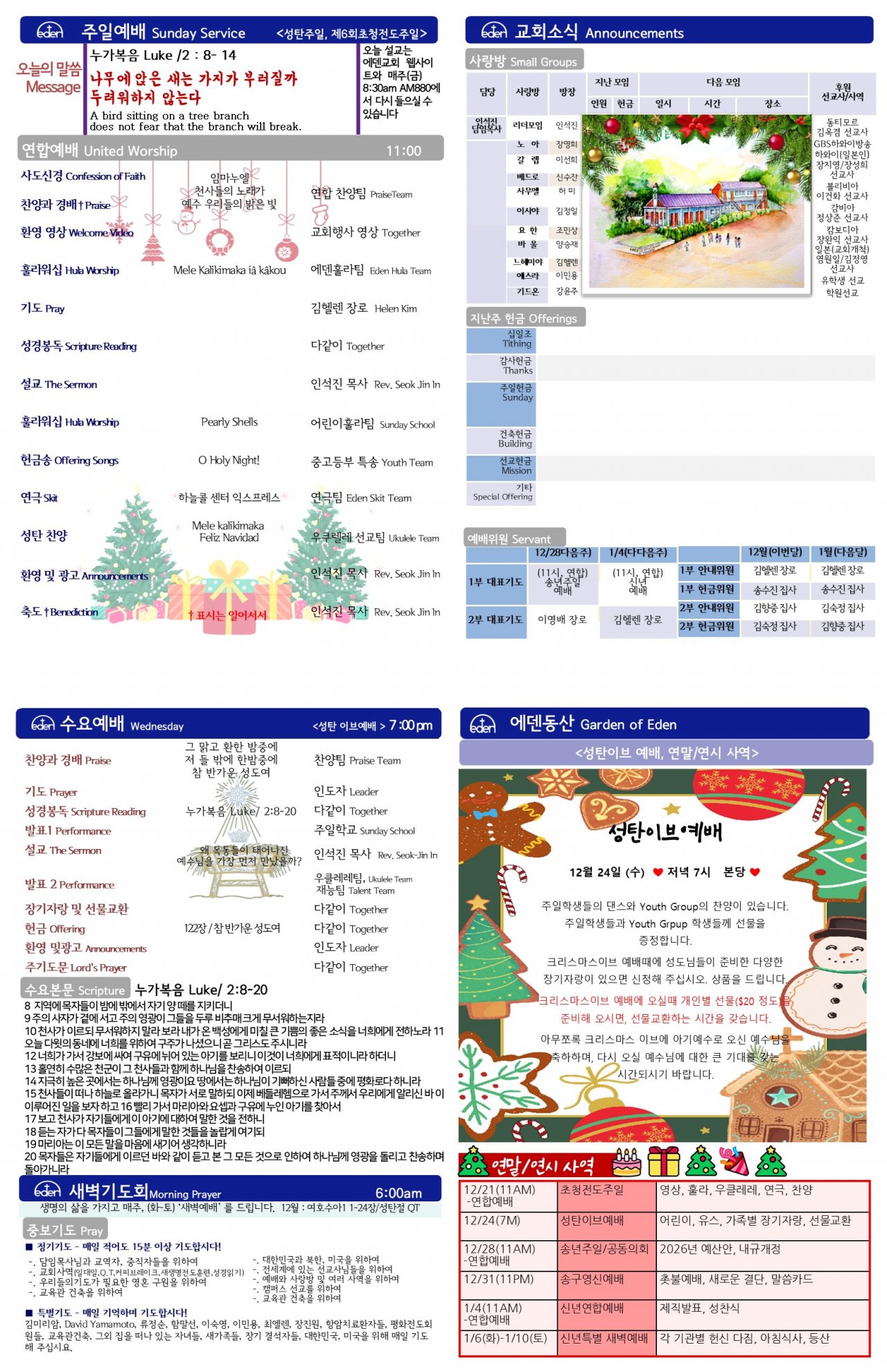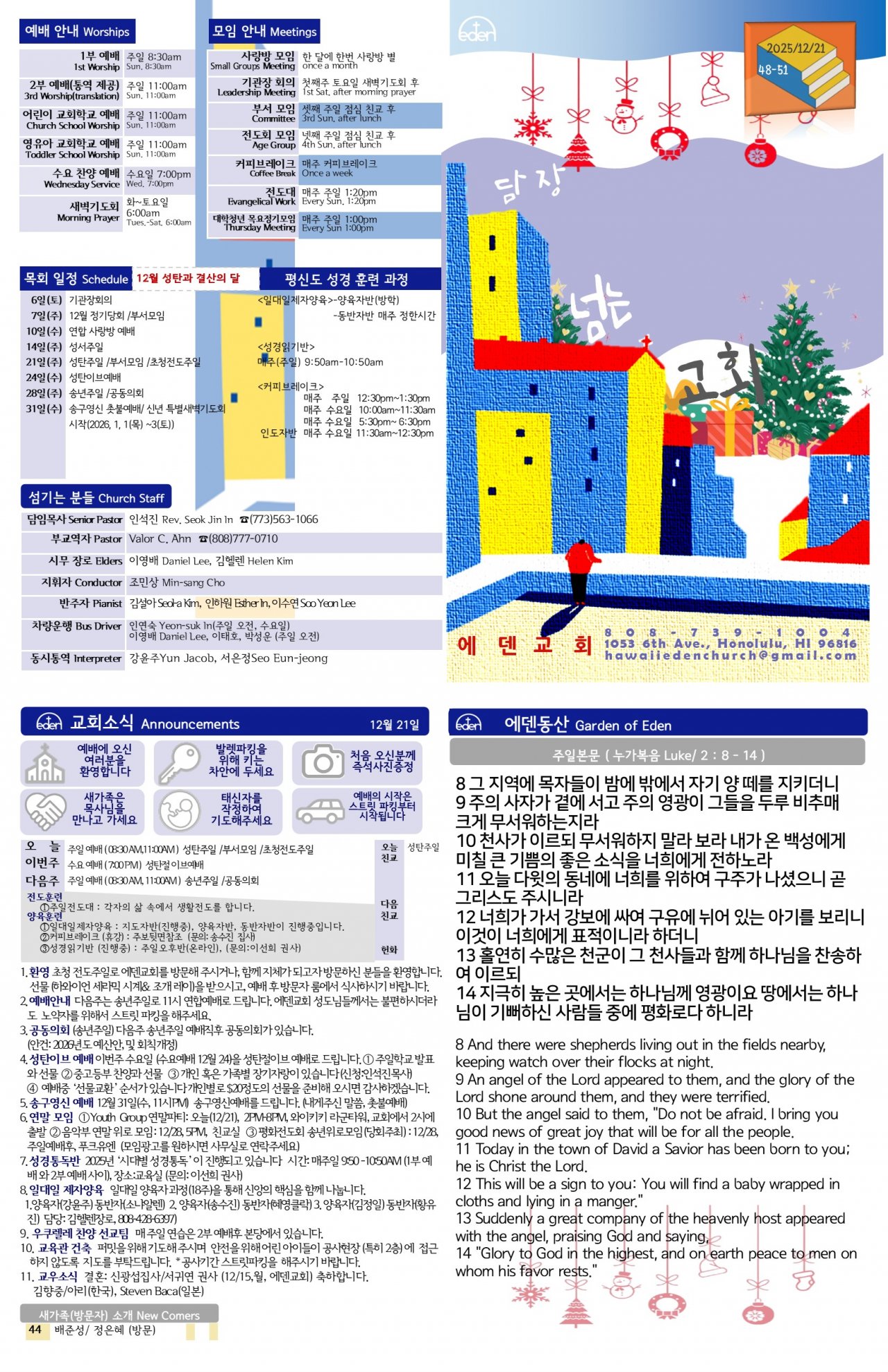2025/ 12/ 21 하와이한인교회 에덴장로교회 주보