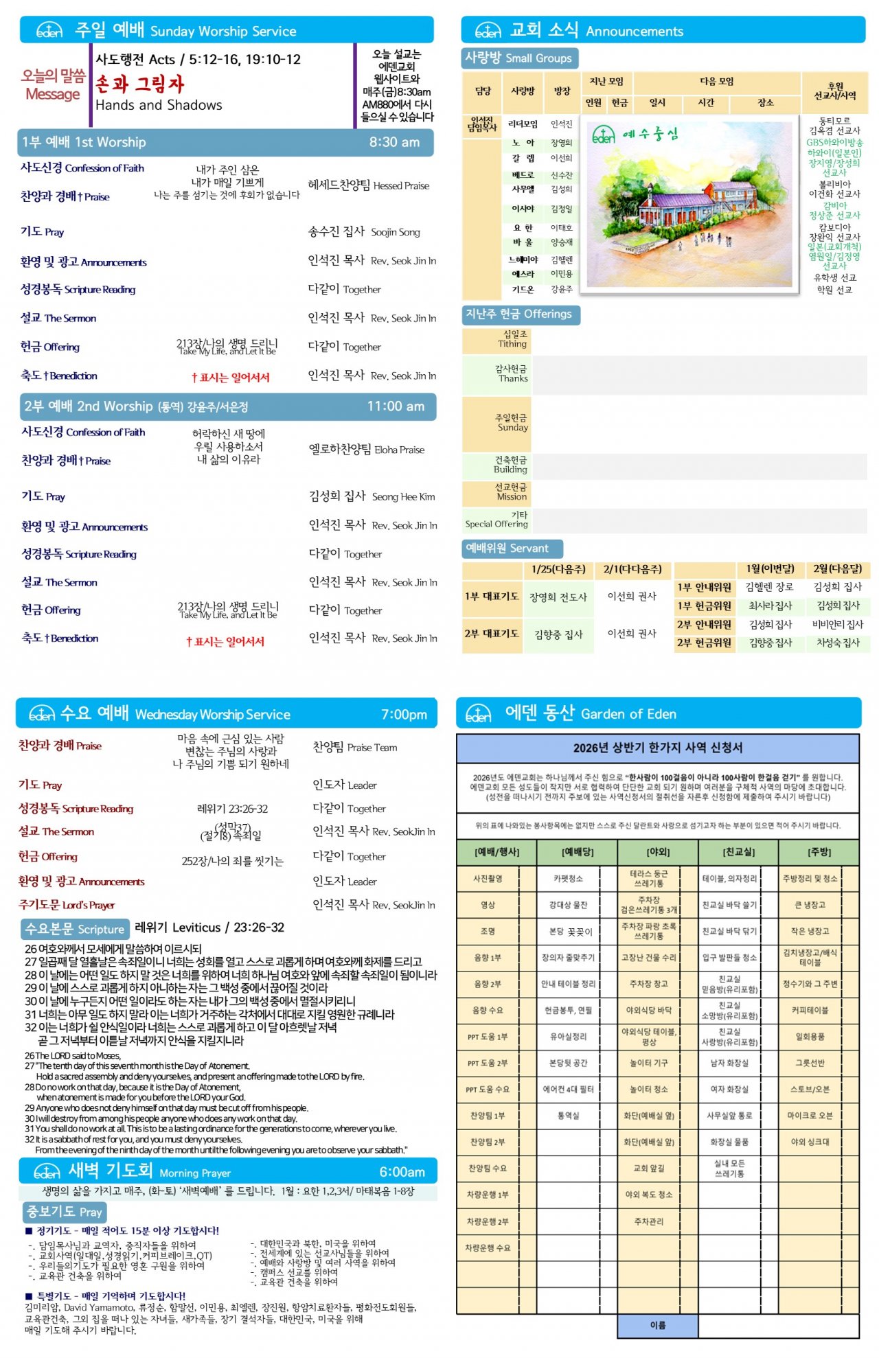 2026/ 1/ 18 하와이한인교회 에덴장로교회 주보