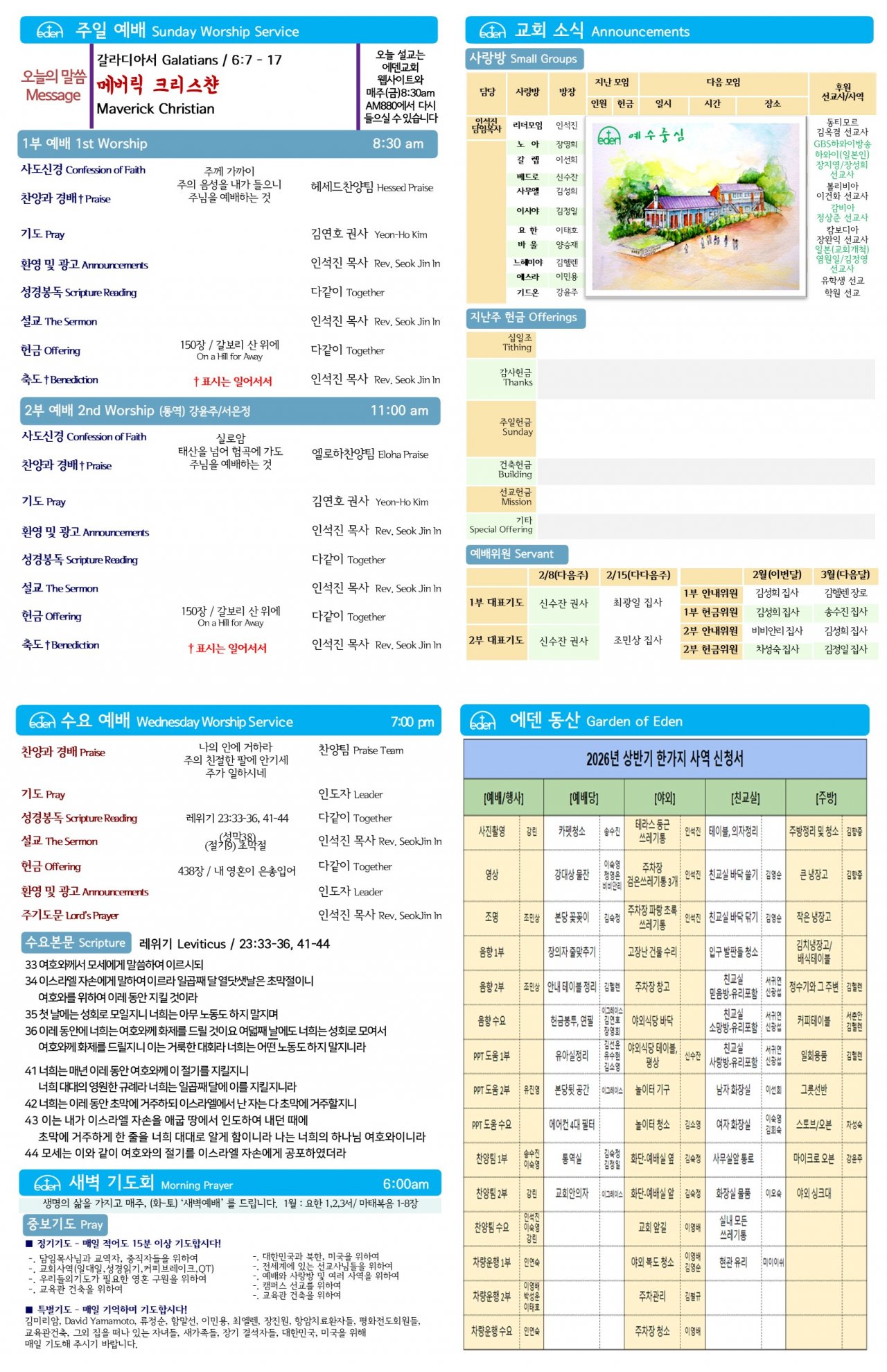 2026/ 2/ 1 하와이한인교회 에덴장로교회 주보