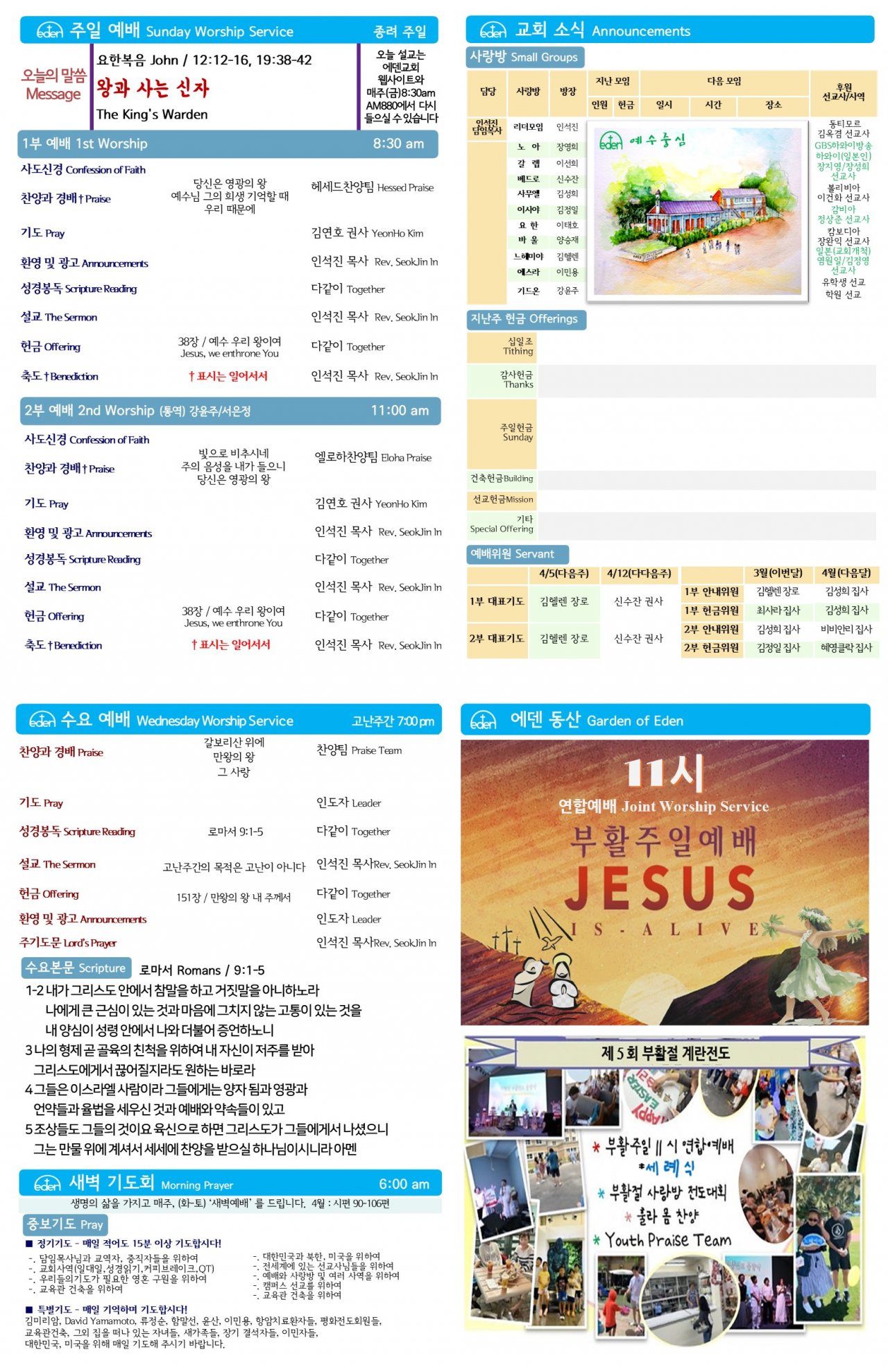 2026/ 3/ 29 하와이한인교회 에덴장로교회 주보
