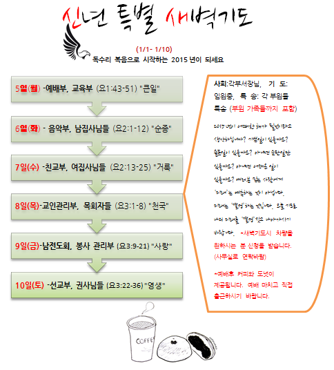 2. 이번주모임 : 신년특별새벽기도회 (1/1 -1/10일)