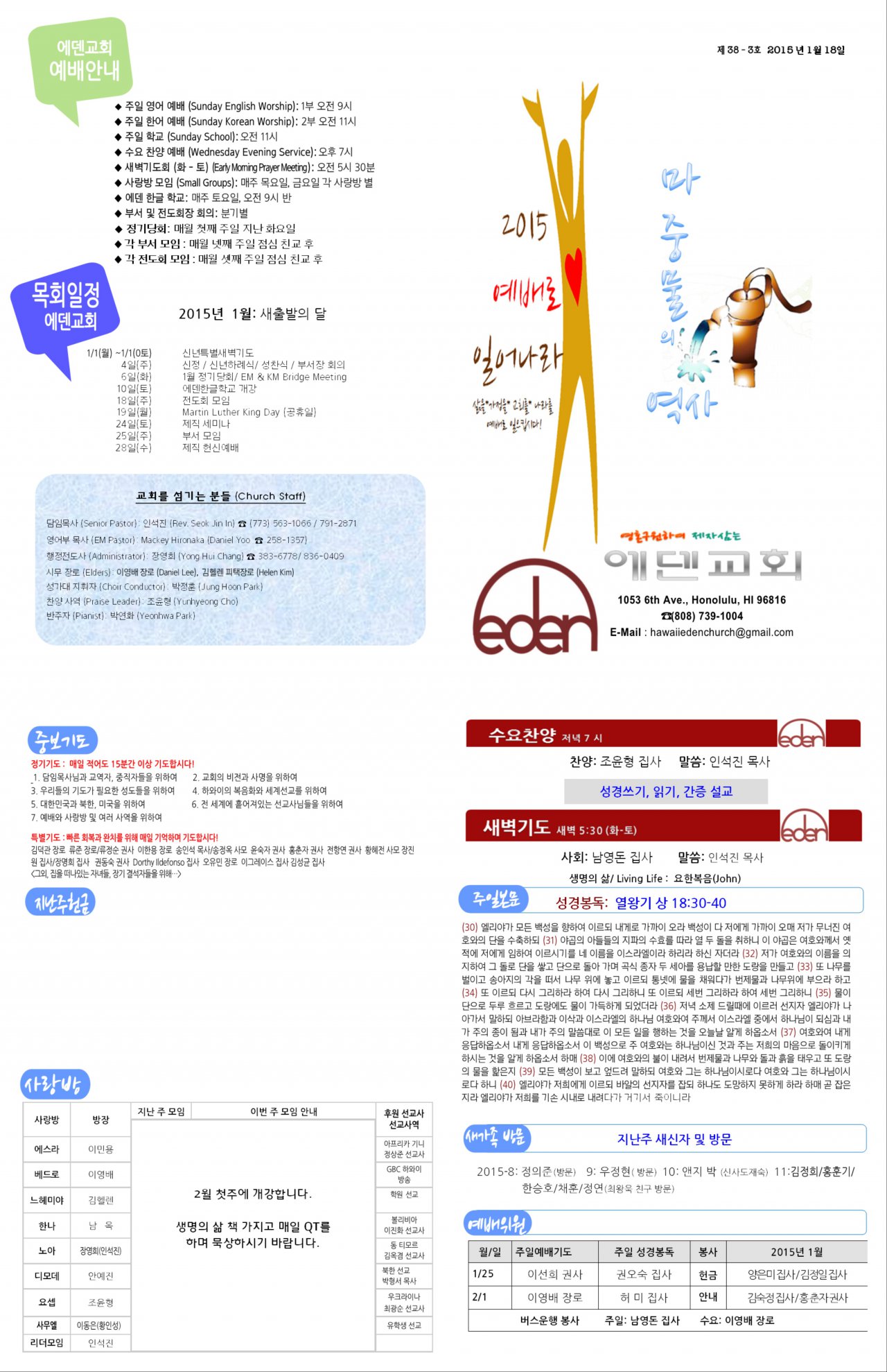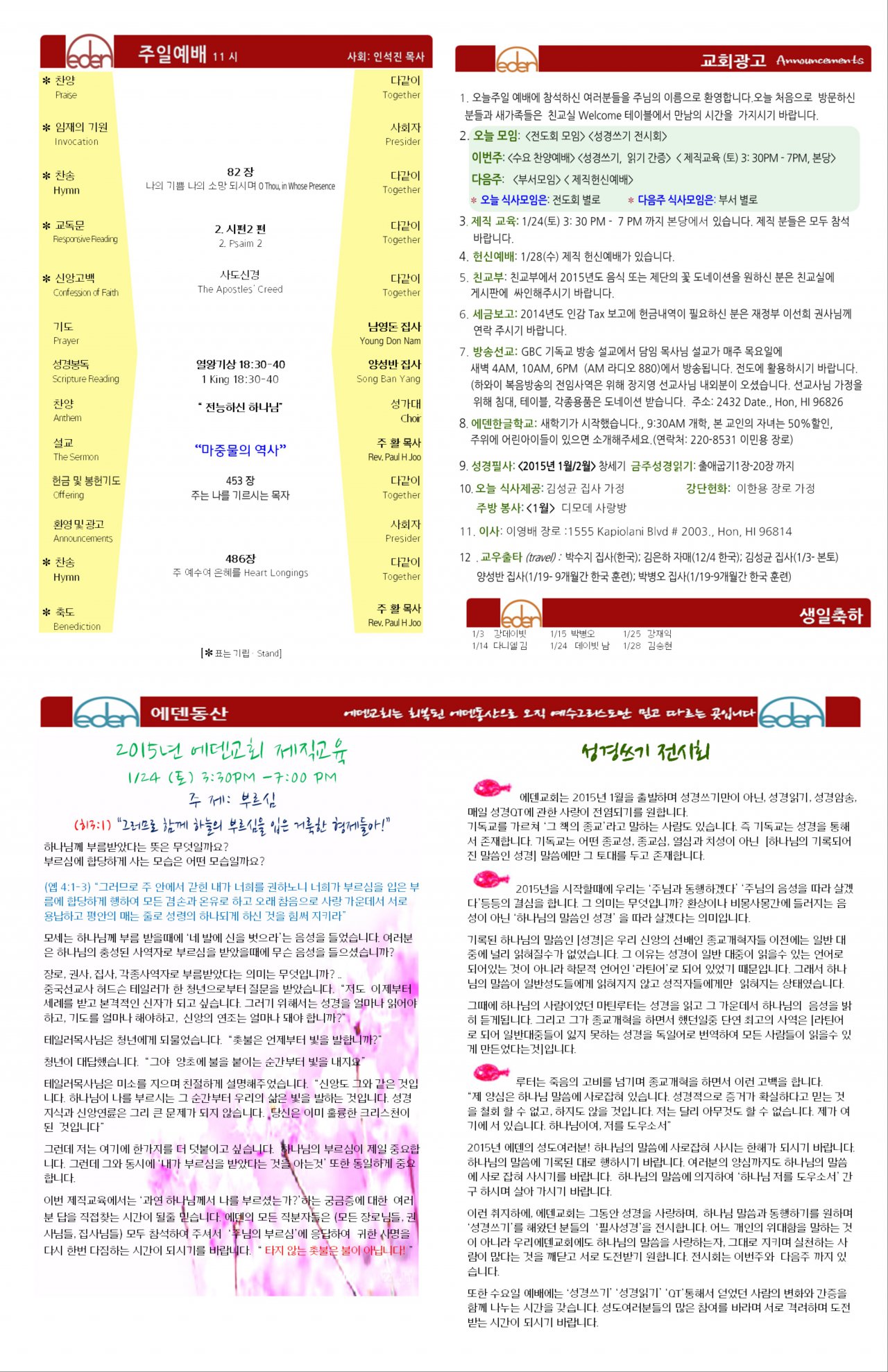 2015/01/18 하와이에덴장로교회 주보