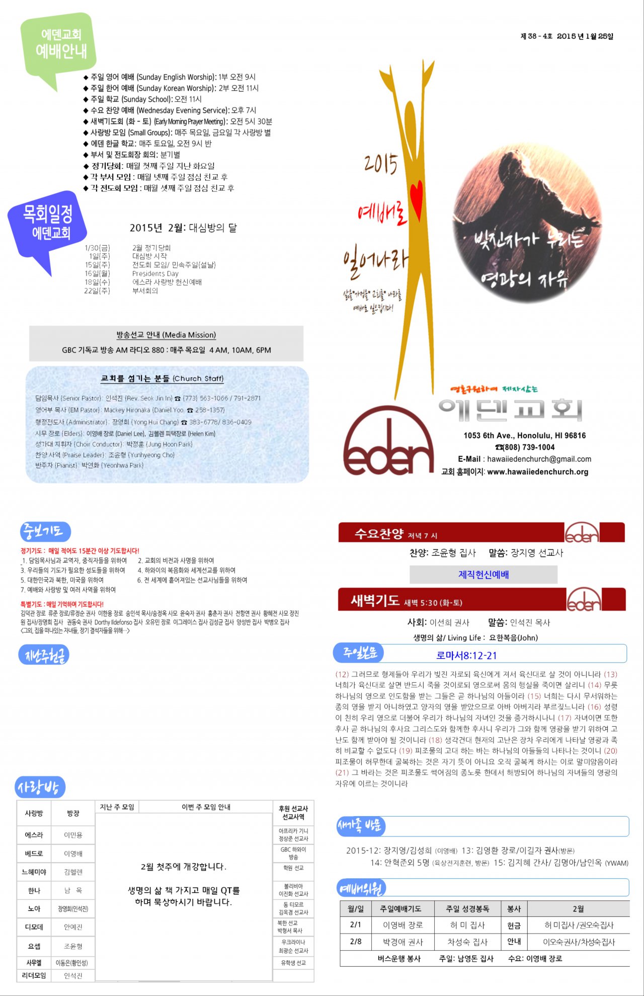 2015/01/25 하와이에덴장로교회 주보