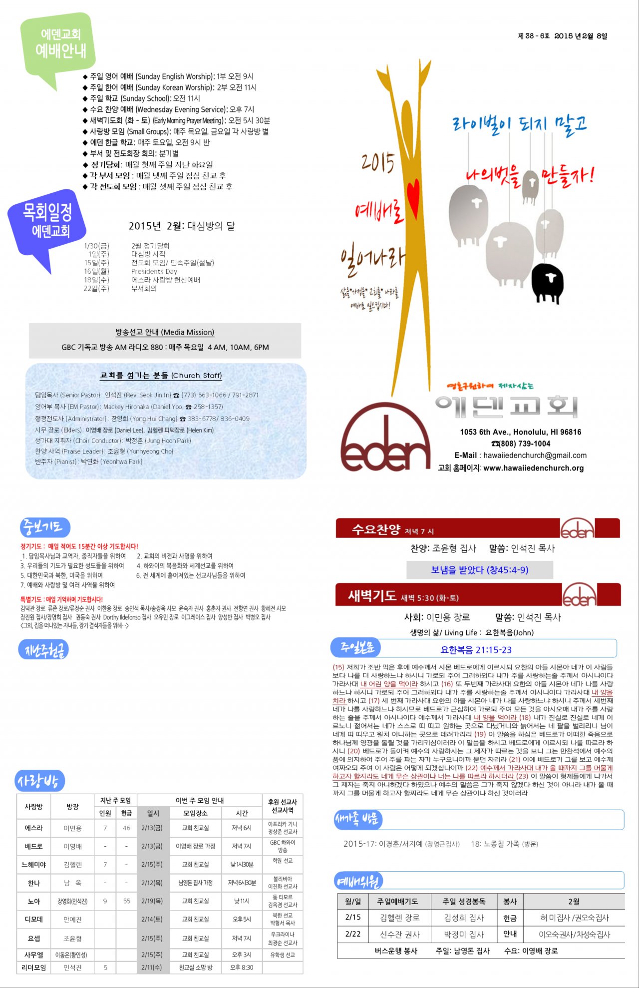 2015/02/08 하와이에덴장로교회 주보