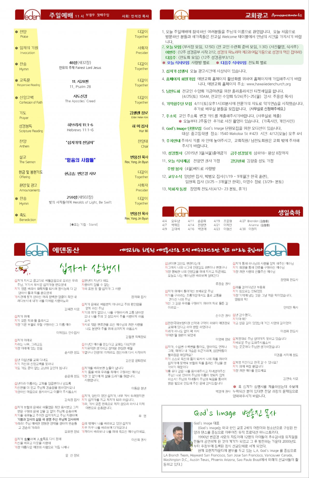 2015/04/12 하와이에덴장로교회 주보