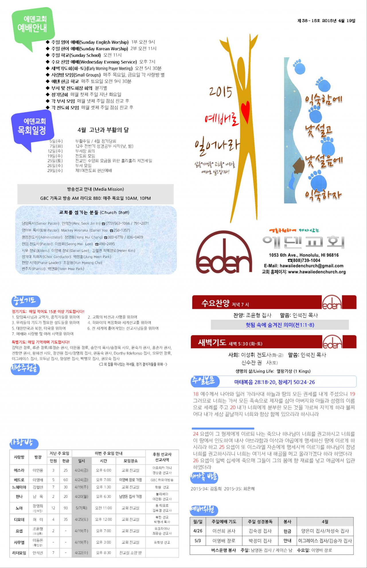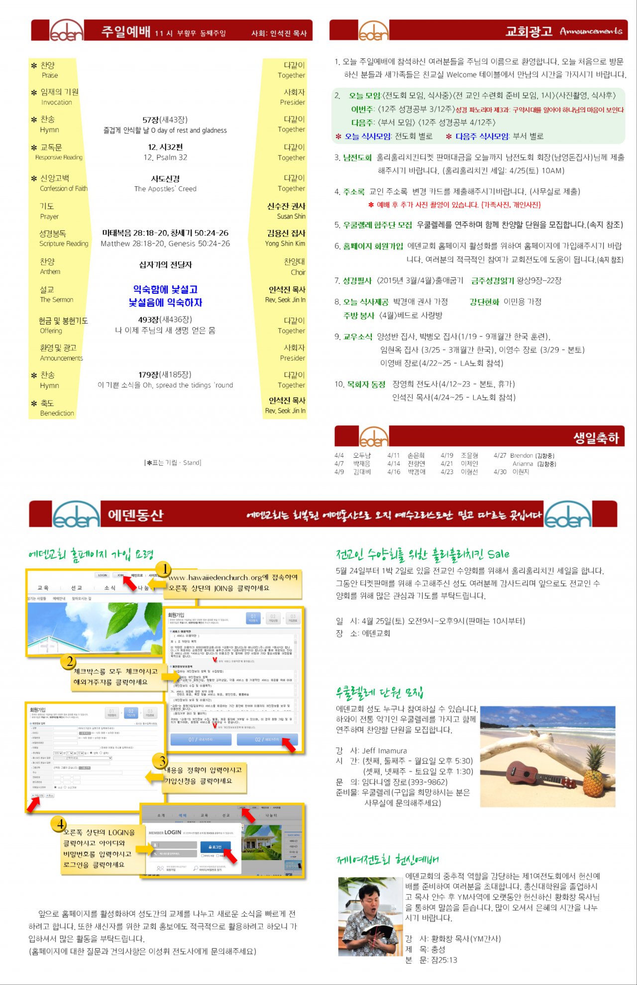 2015/04/19 하와이에덴장로교회 주보