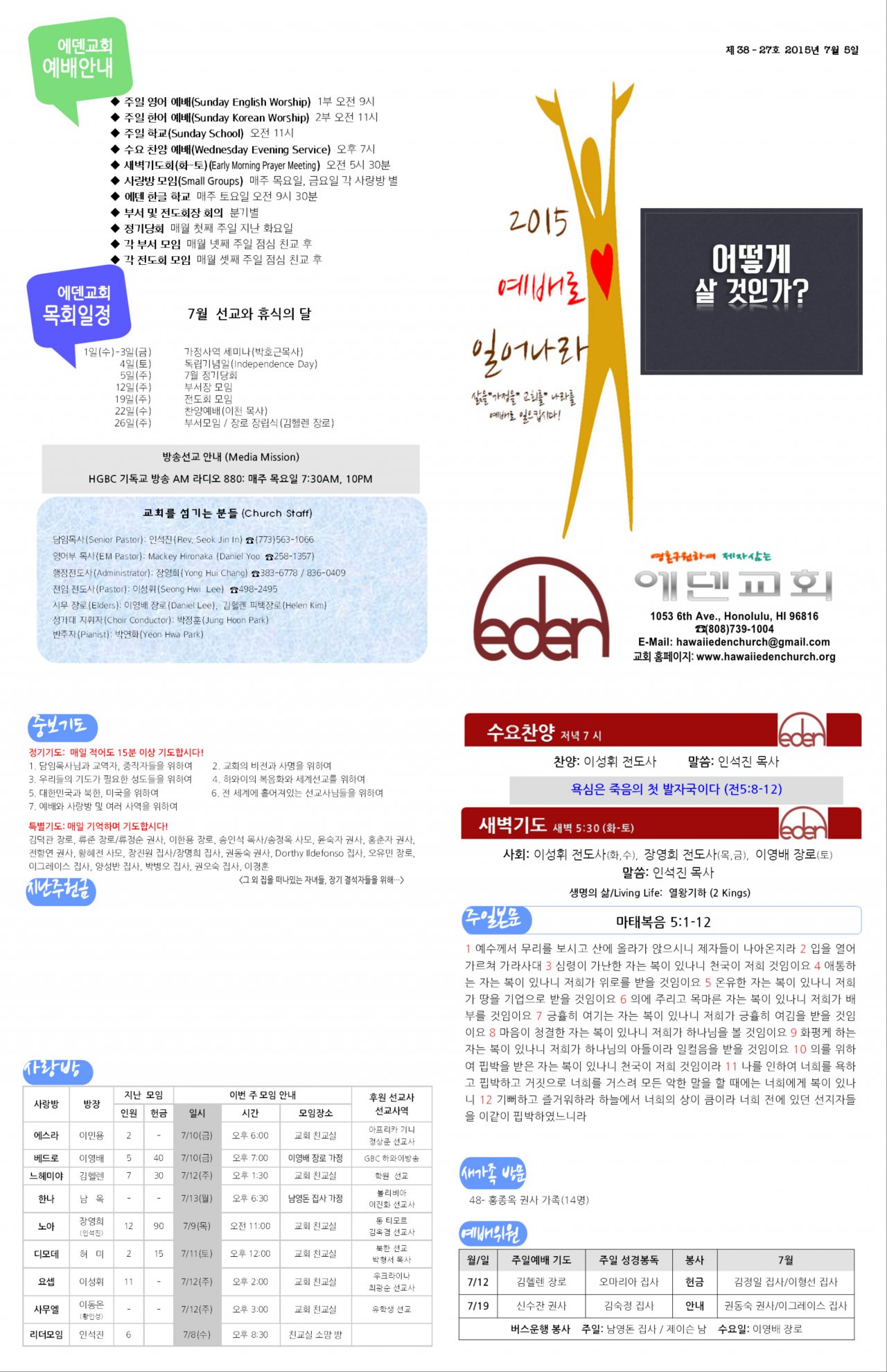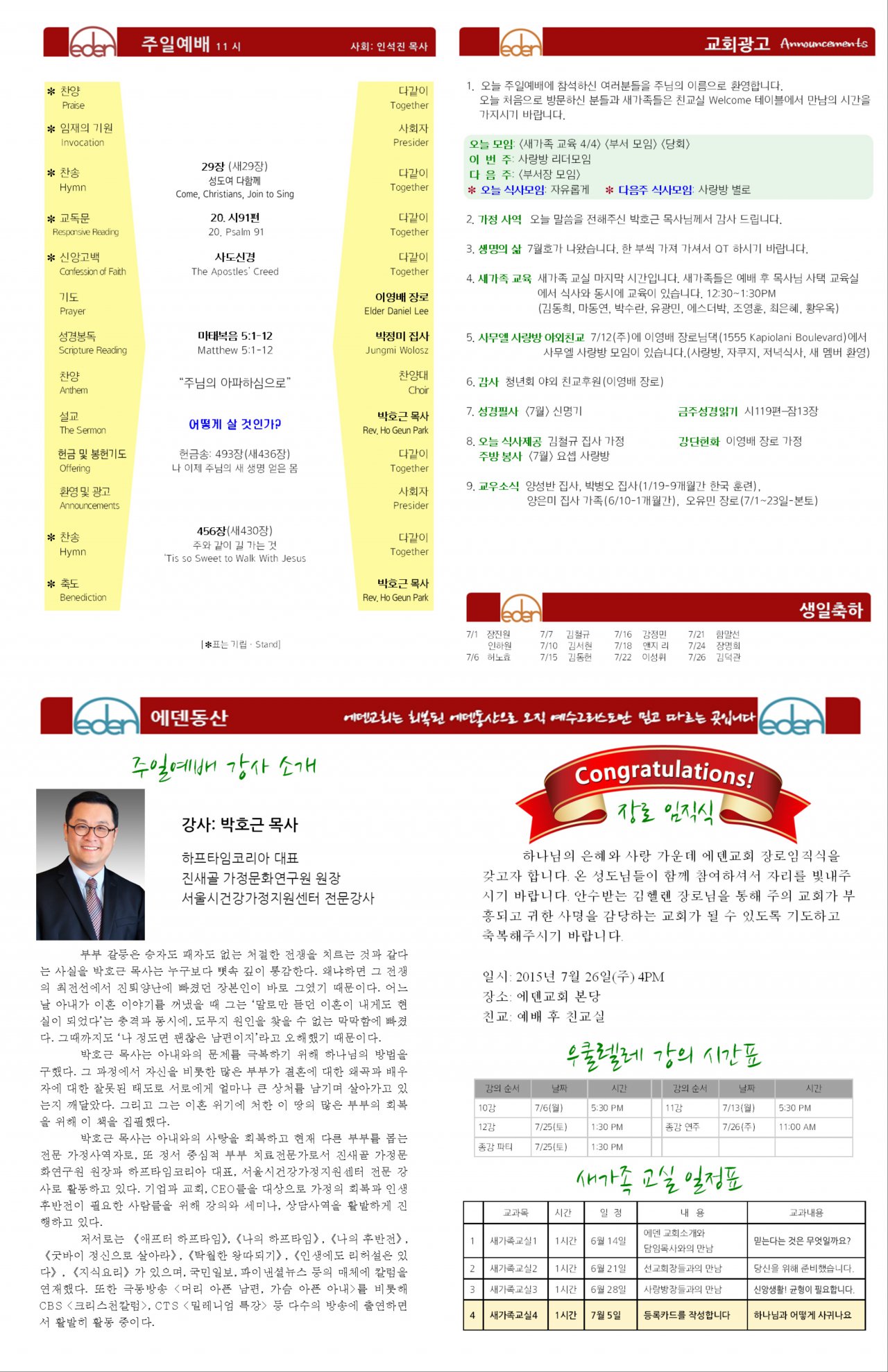 2015/07/05 하와이에덴장로교회 주보
