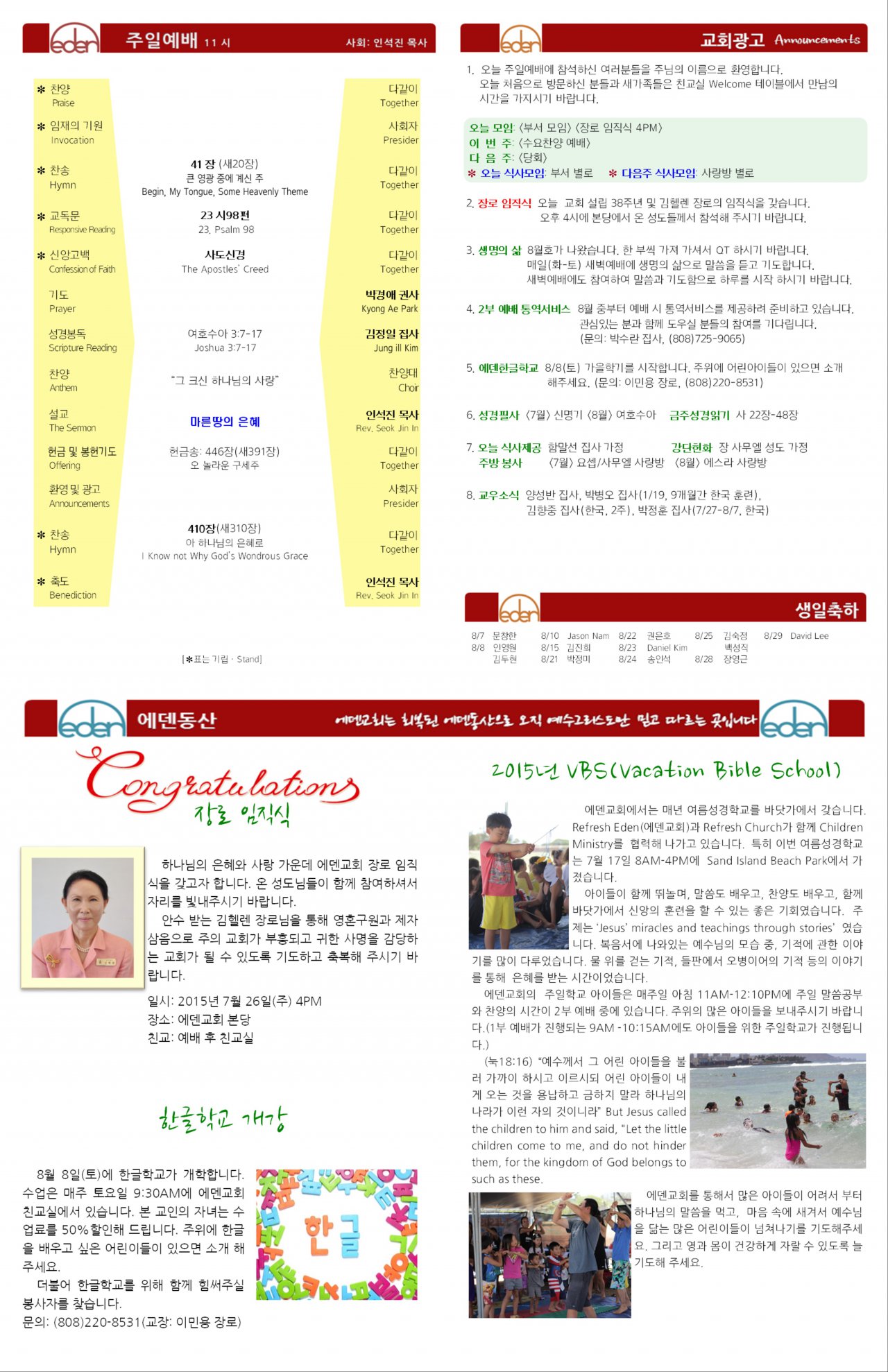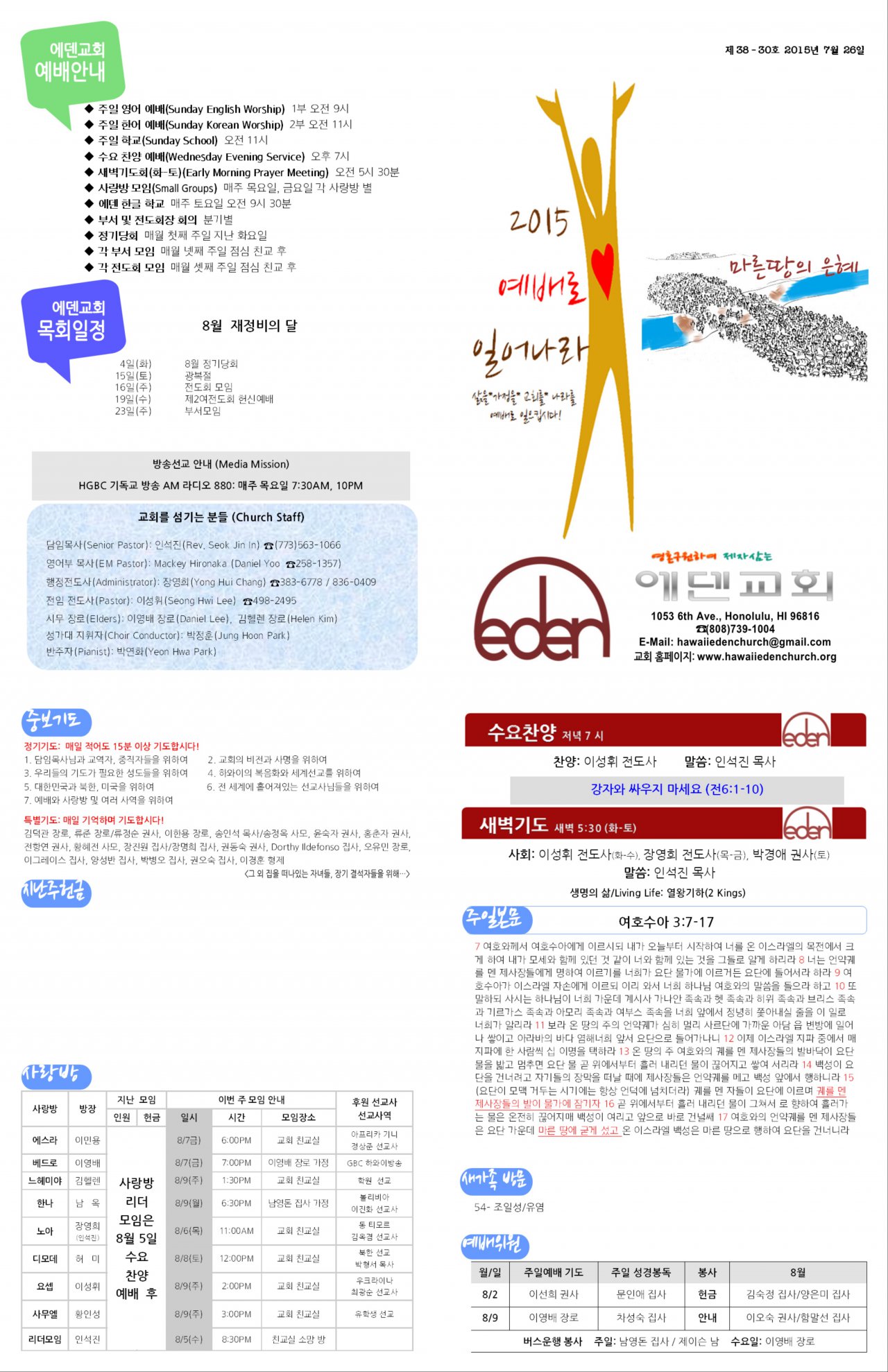 2015/07/26 하와이에덴장로교회 주보