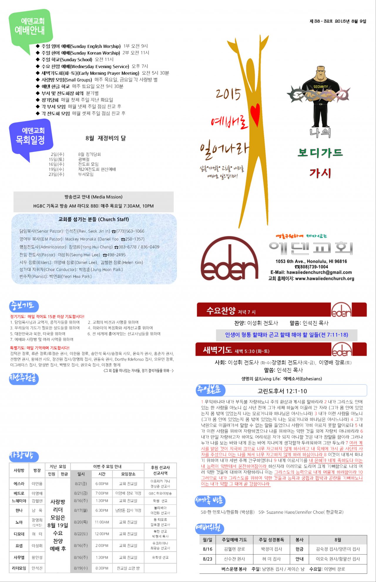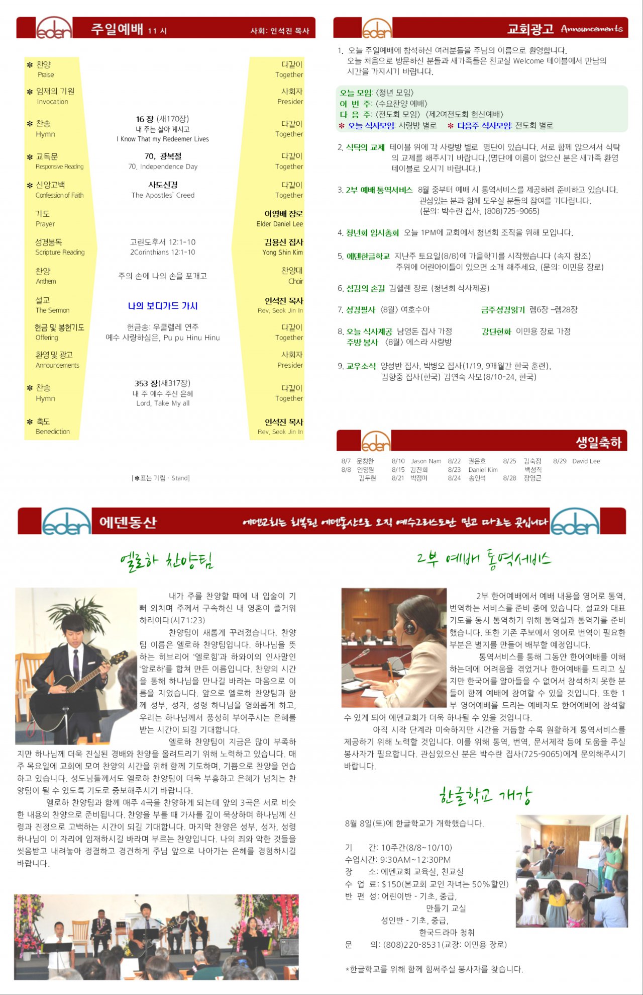 2015/08/09 하와이한인장로교회 에덴교회 주보