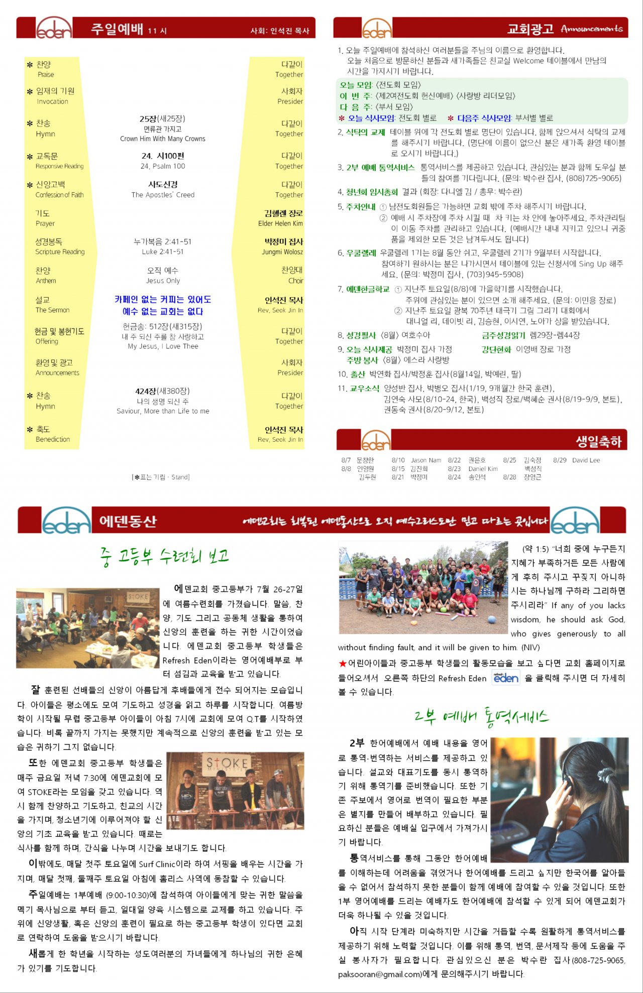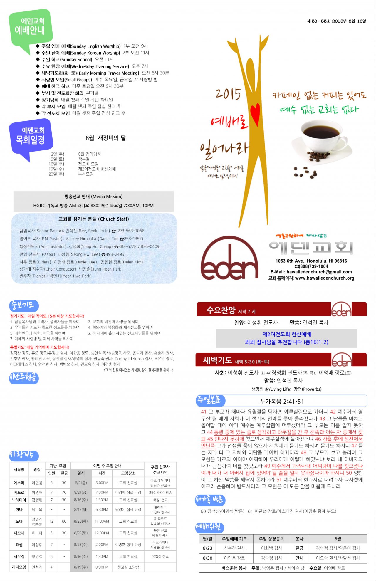 2015/08/16 하와이한인장로교회 에덴교회 주보