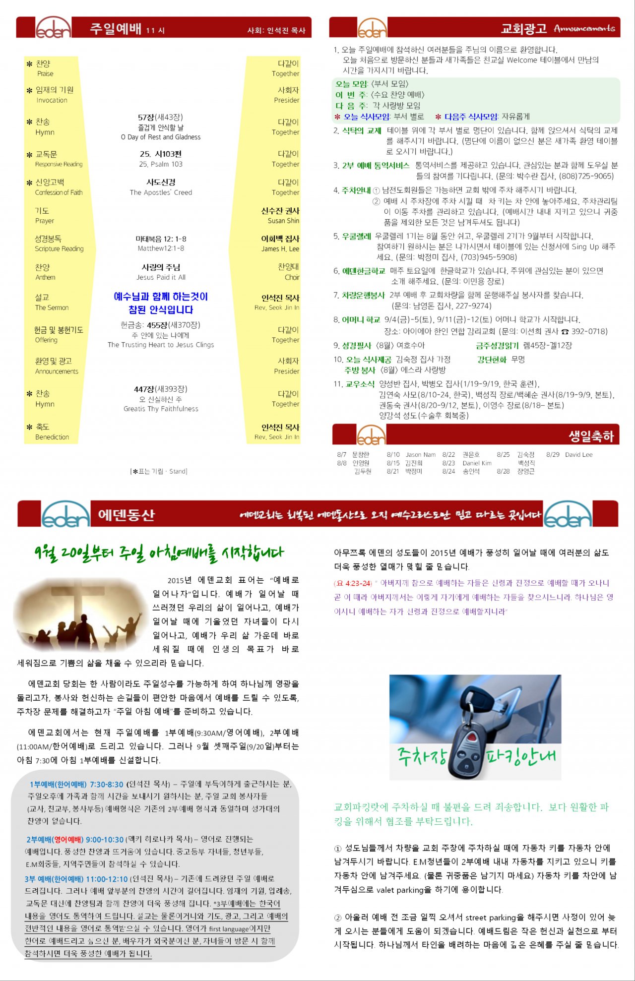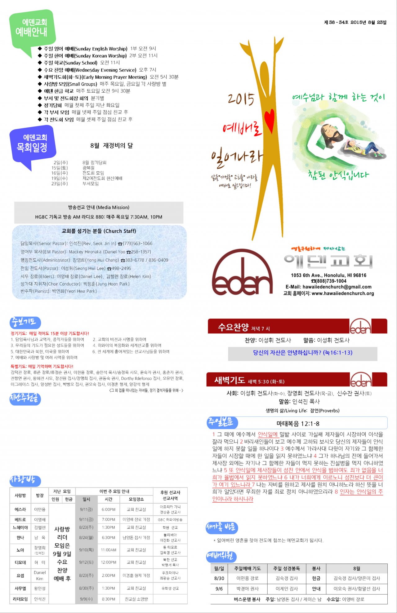2015/08/23 하와이한인장로교회 에덴교회 주보