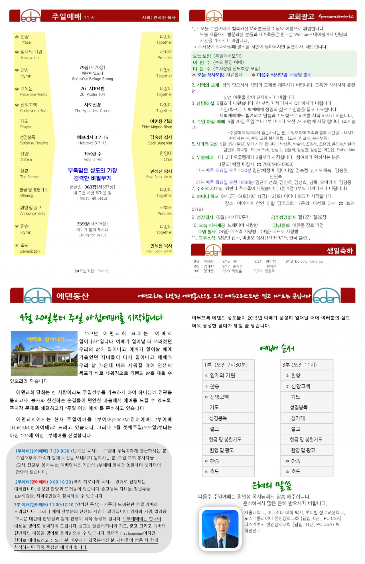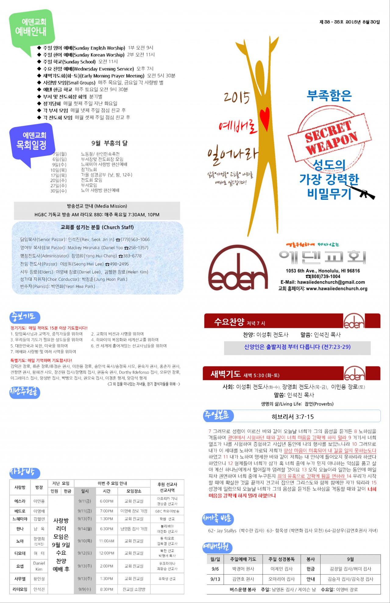 2015/08/30 하와이한인장로교회 에덴교회 주보