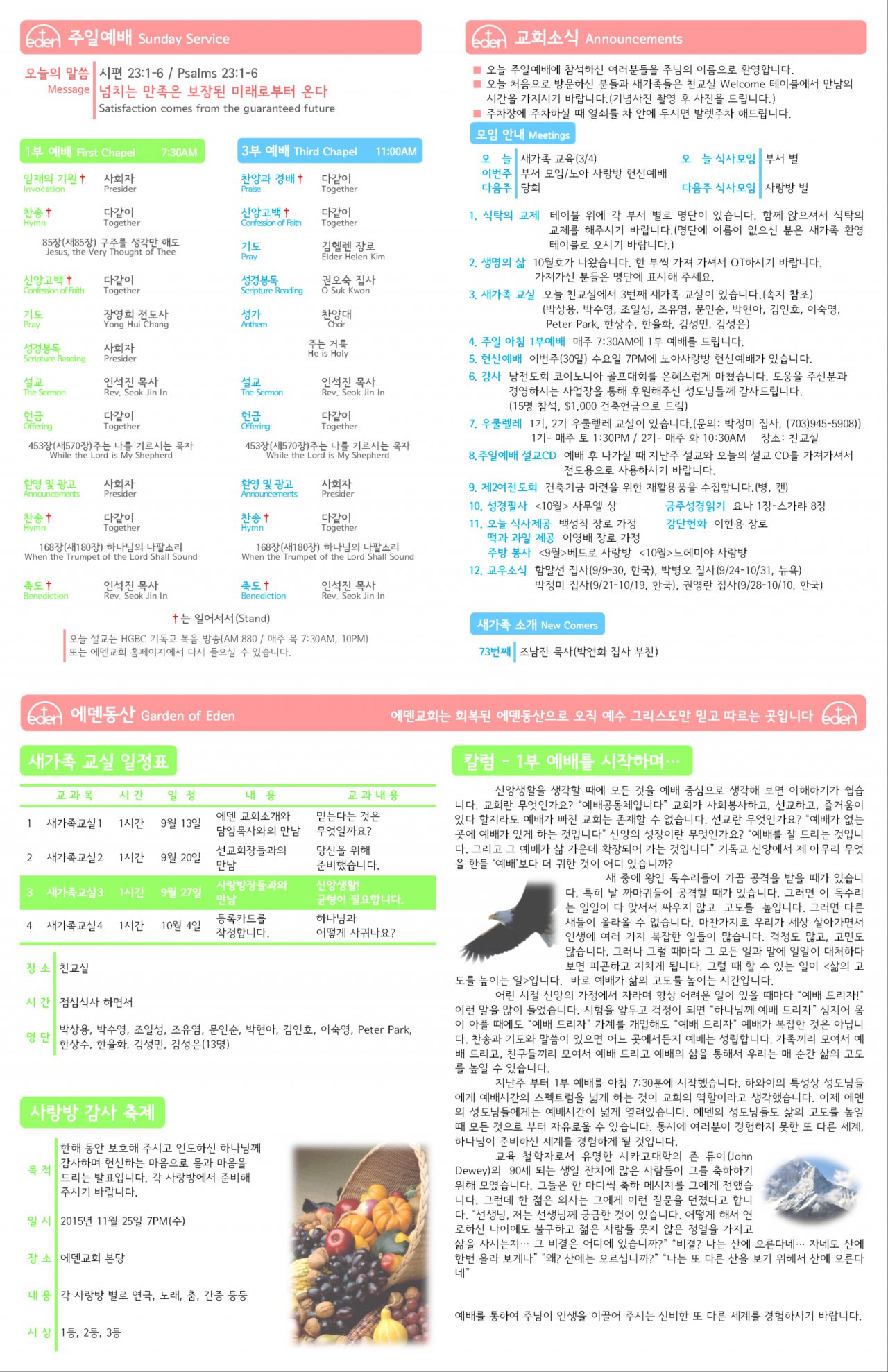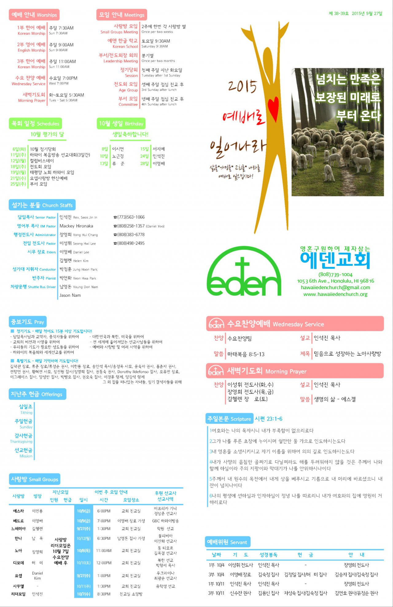 2015/09/27 하와이한인장로교회 에덴교회 주보