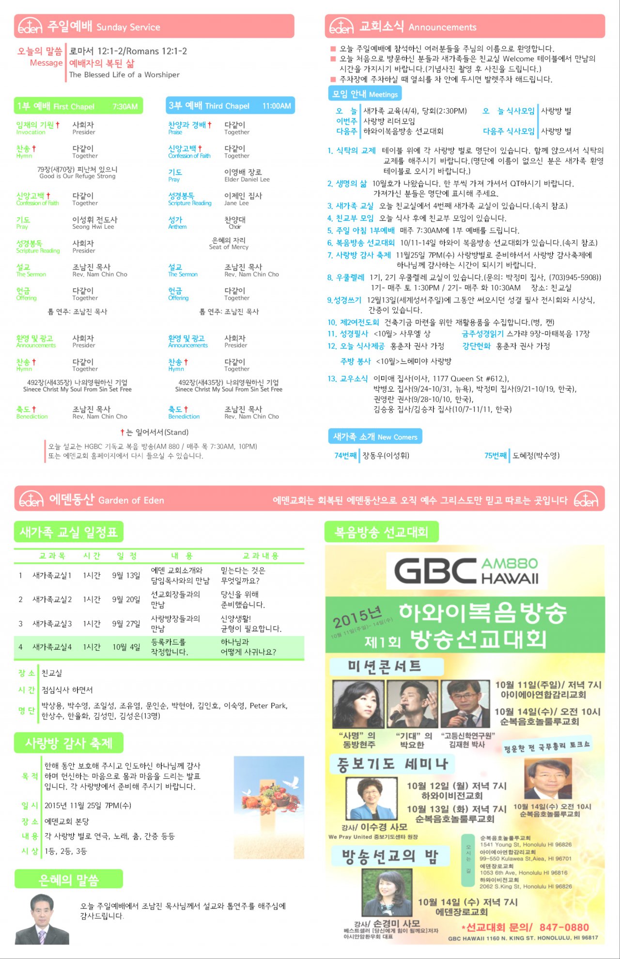 2015/10/04 하와이한인장로교회 에덴교회 주보