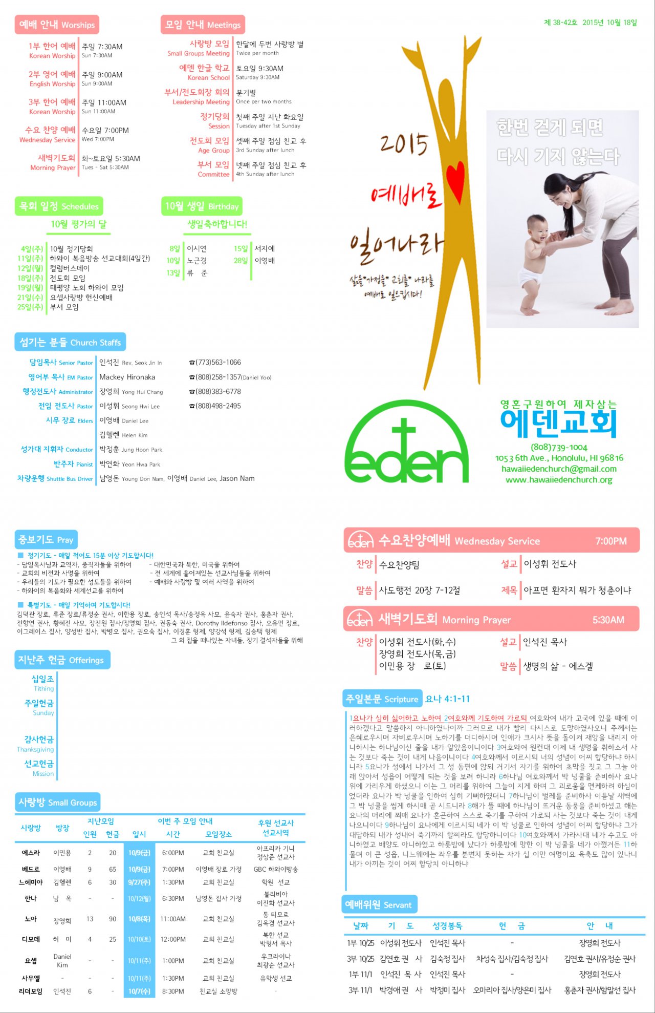 2015/10/18 하와이한인장로교회 에덴교회 주보