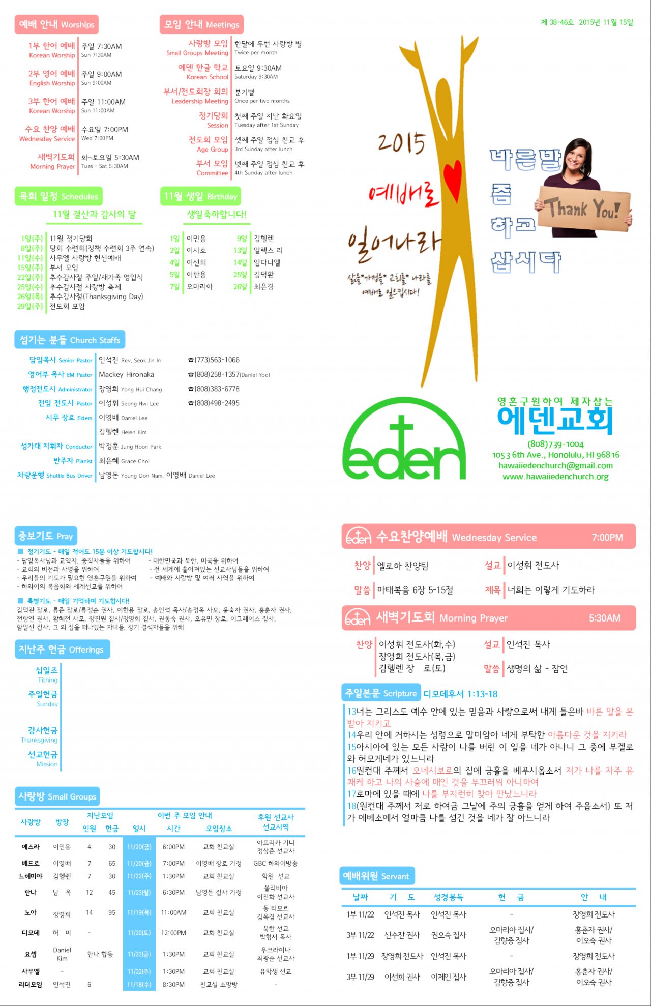 2015/11/15 하와이한인장로교회 에덴교회 주보