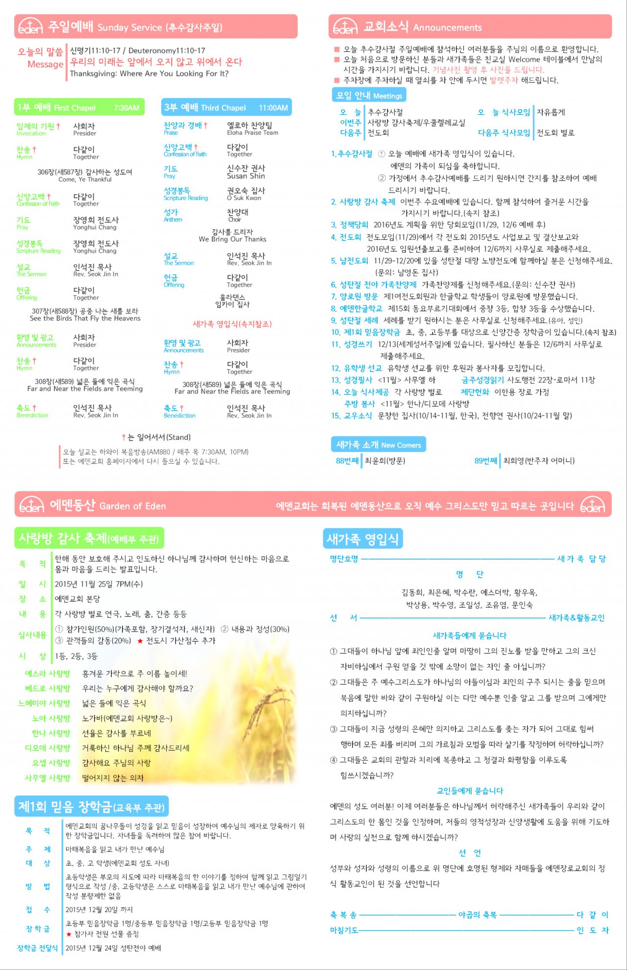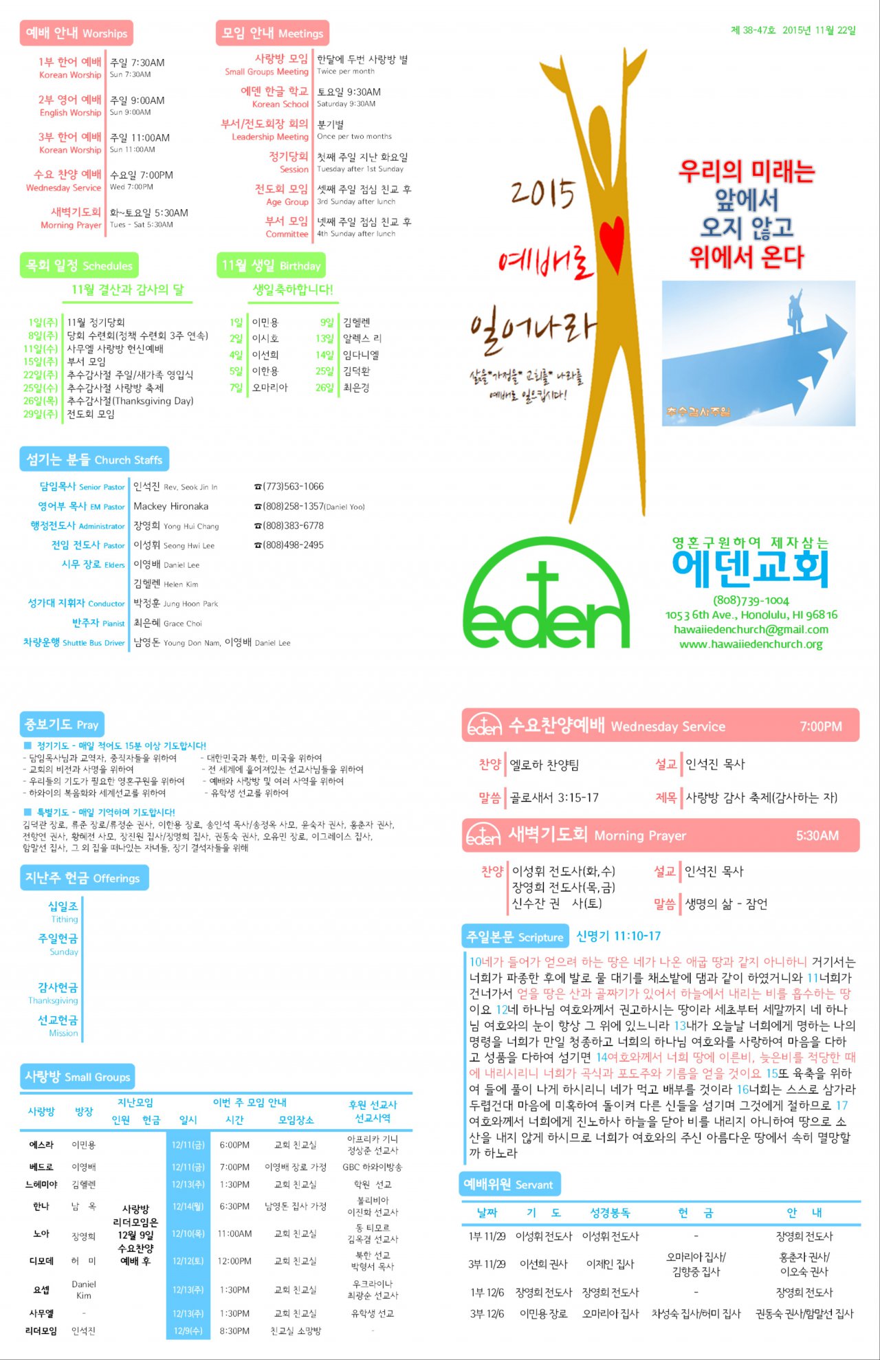 2015/11/22 하와이한인장로교회 에덴교회 주보