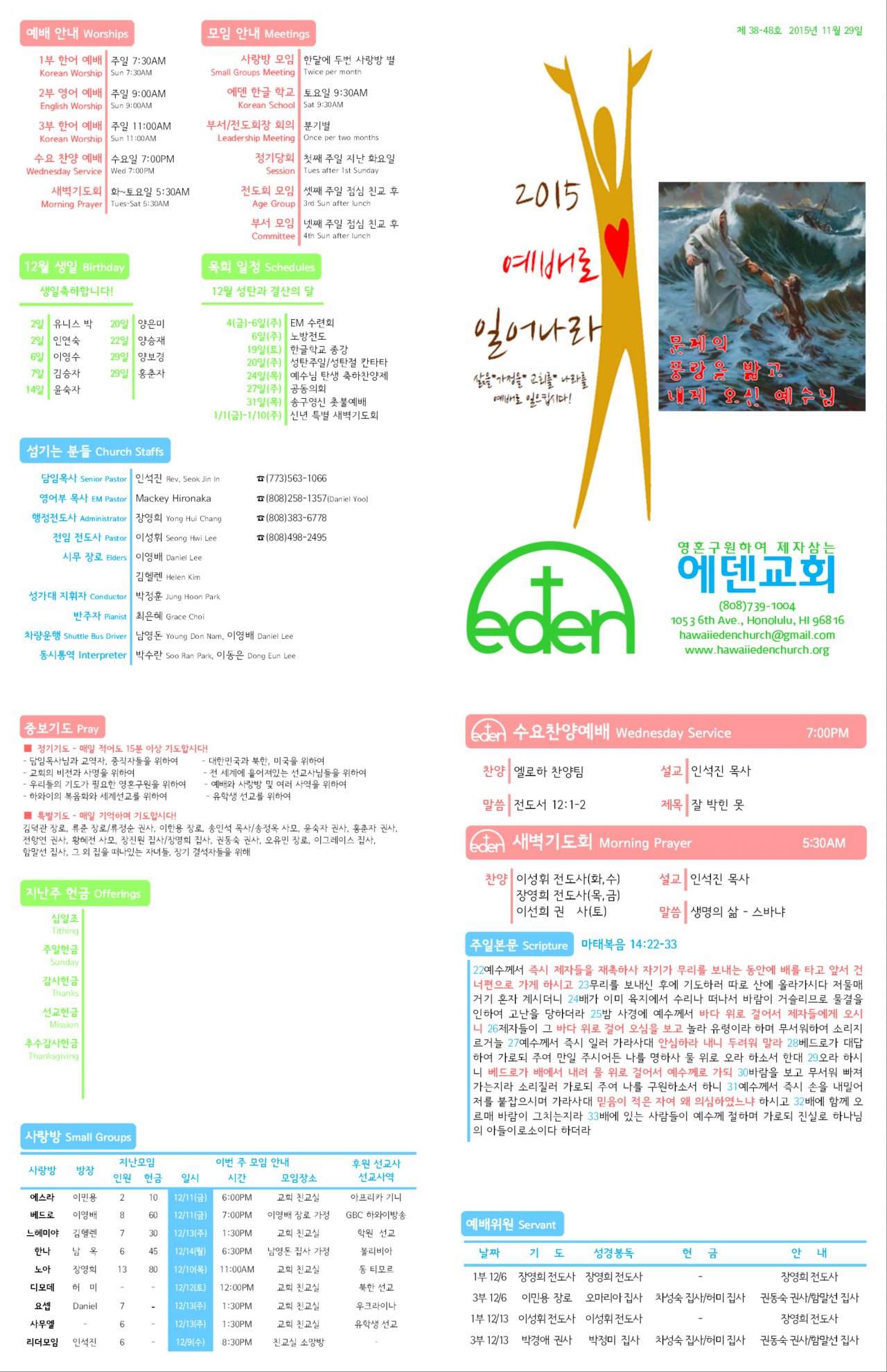 2015/11/29 하와이한인장로교회 에덴교회 주보