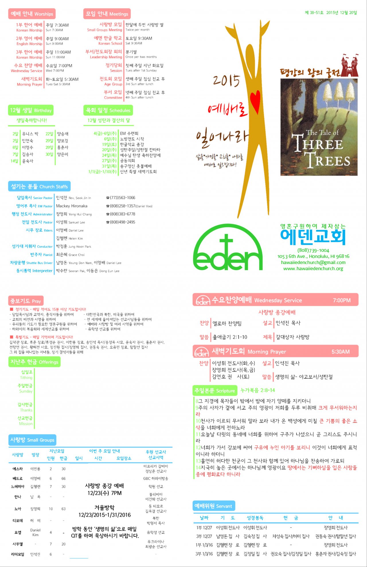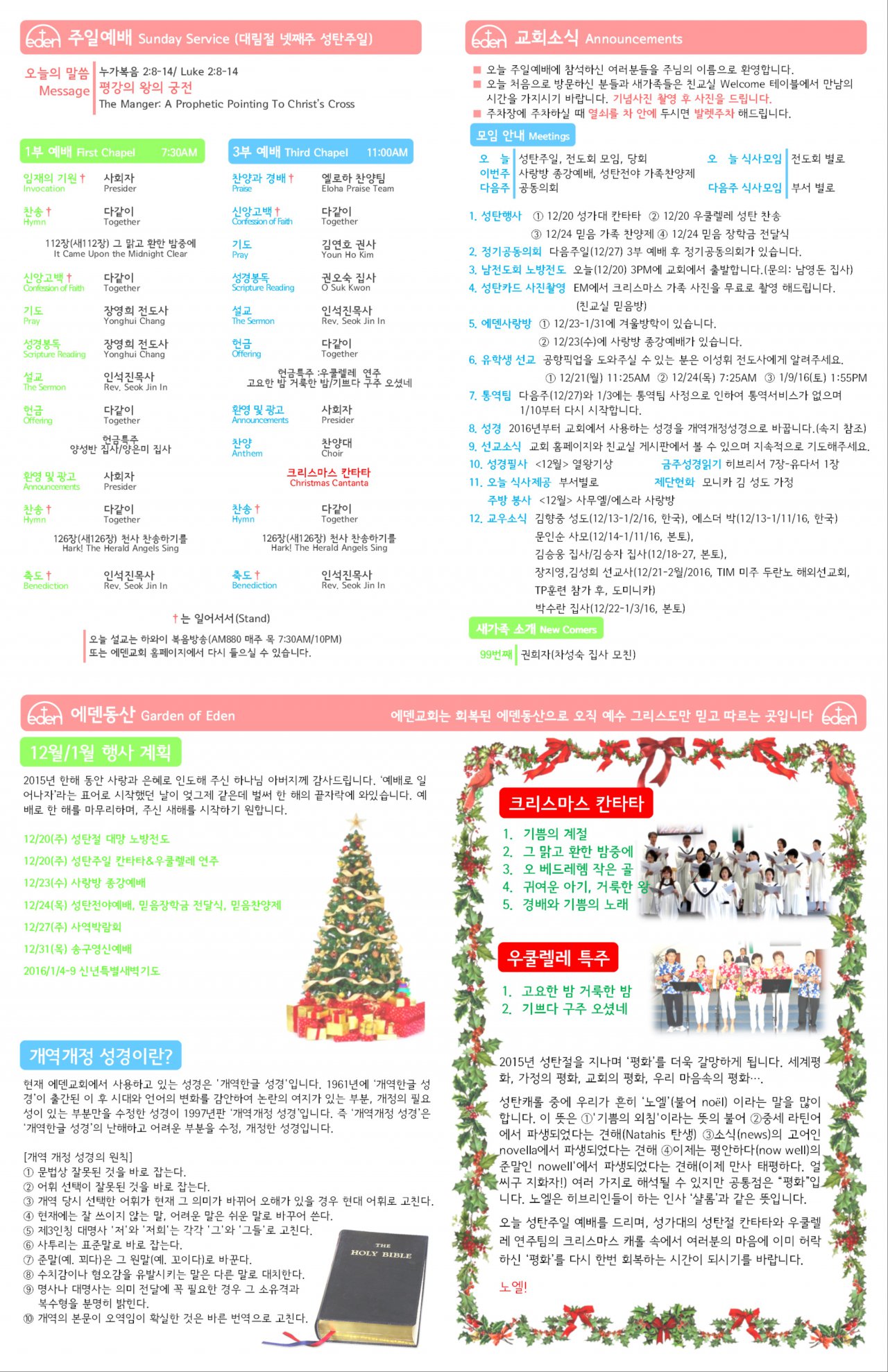 2015/12/20 하와이한인장로교회 에덴교회 주보